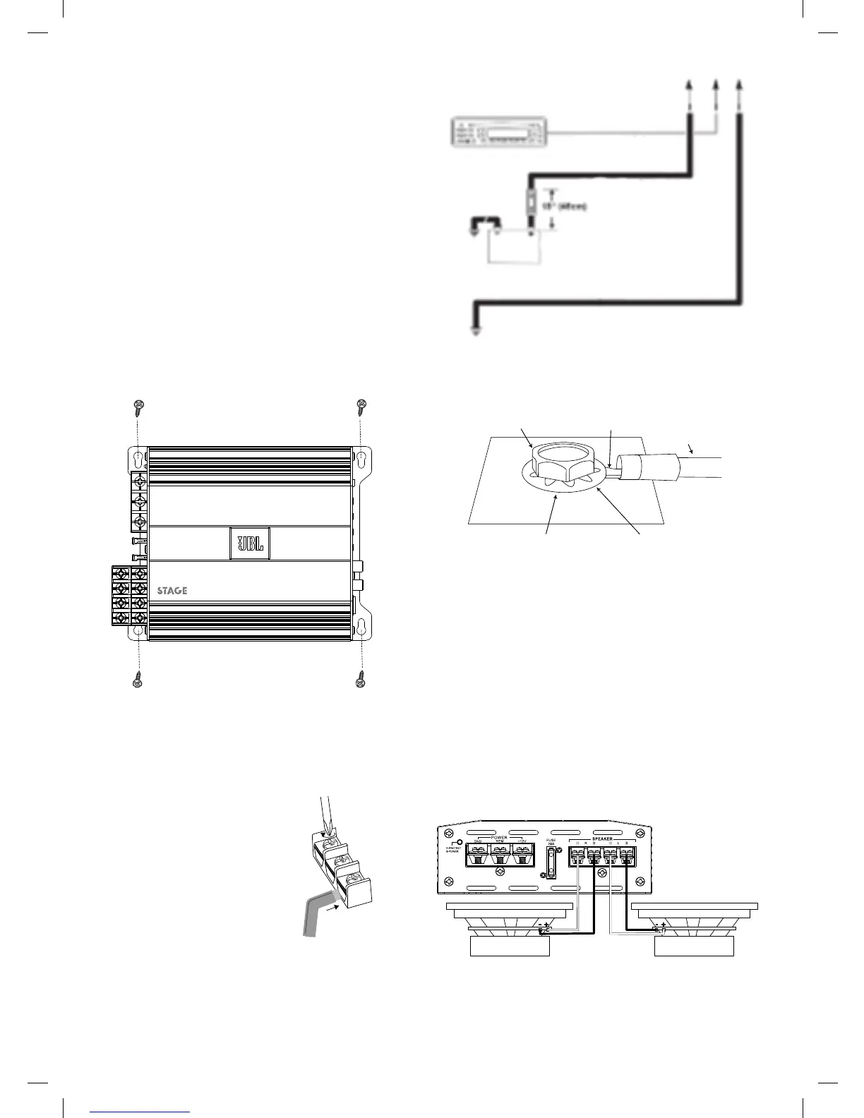 atau subwoofer ke terminal R+. dan kabel negatif dari speaker atau