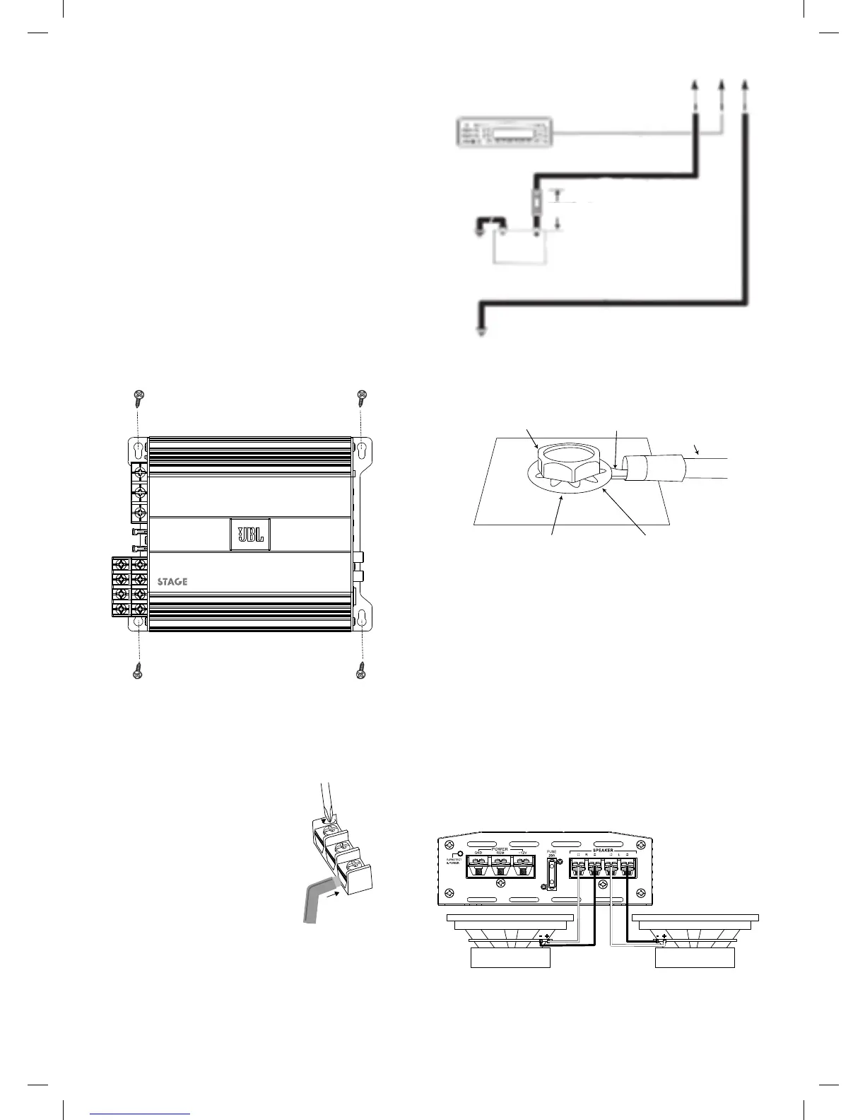 • Fissare l'amplificatore alla superficie di montaggio con le viti incluse.