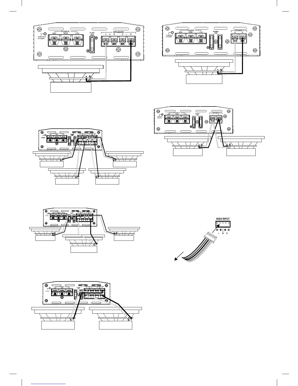 o Per pilotare due subwoofer in parallelo, collegare i terminali positivo (+)