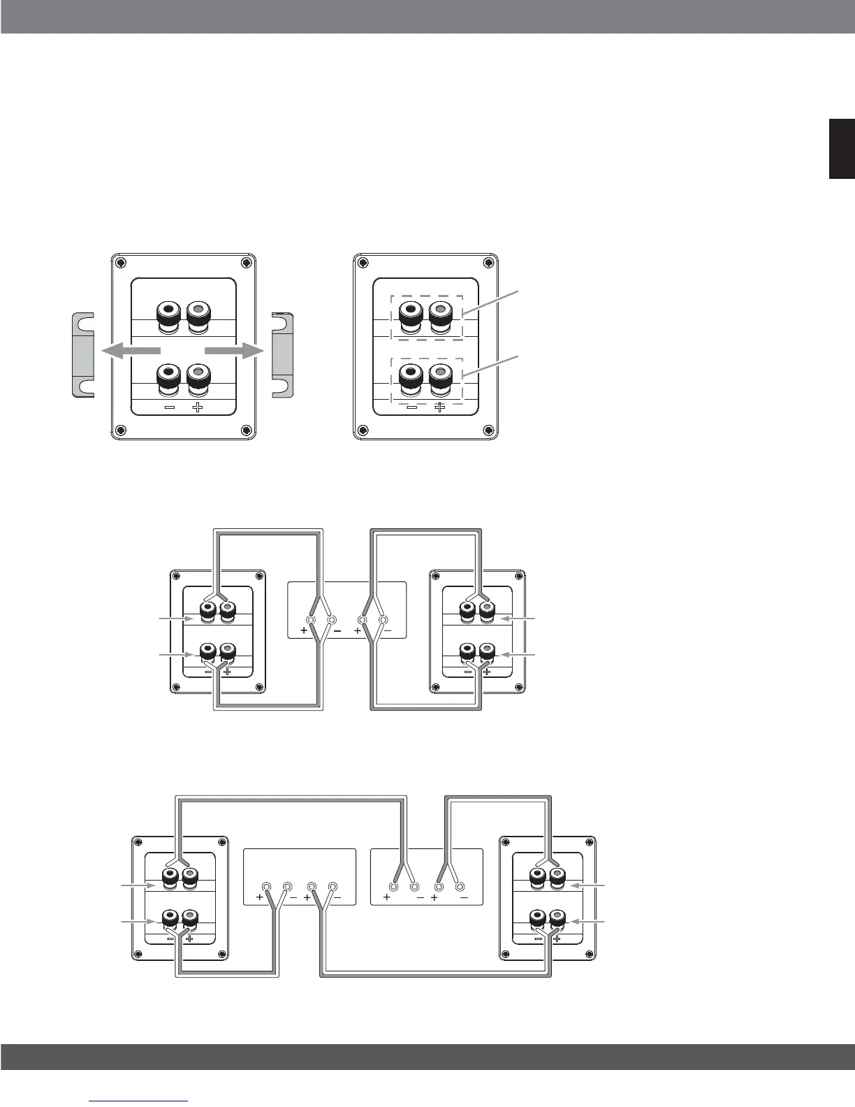 Möchten Sie die Lautsprecher mit der Bi-Wiring-Methode verkabeln, müssen Sie unbedingt die Kurzschlussbrücken