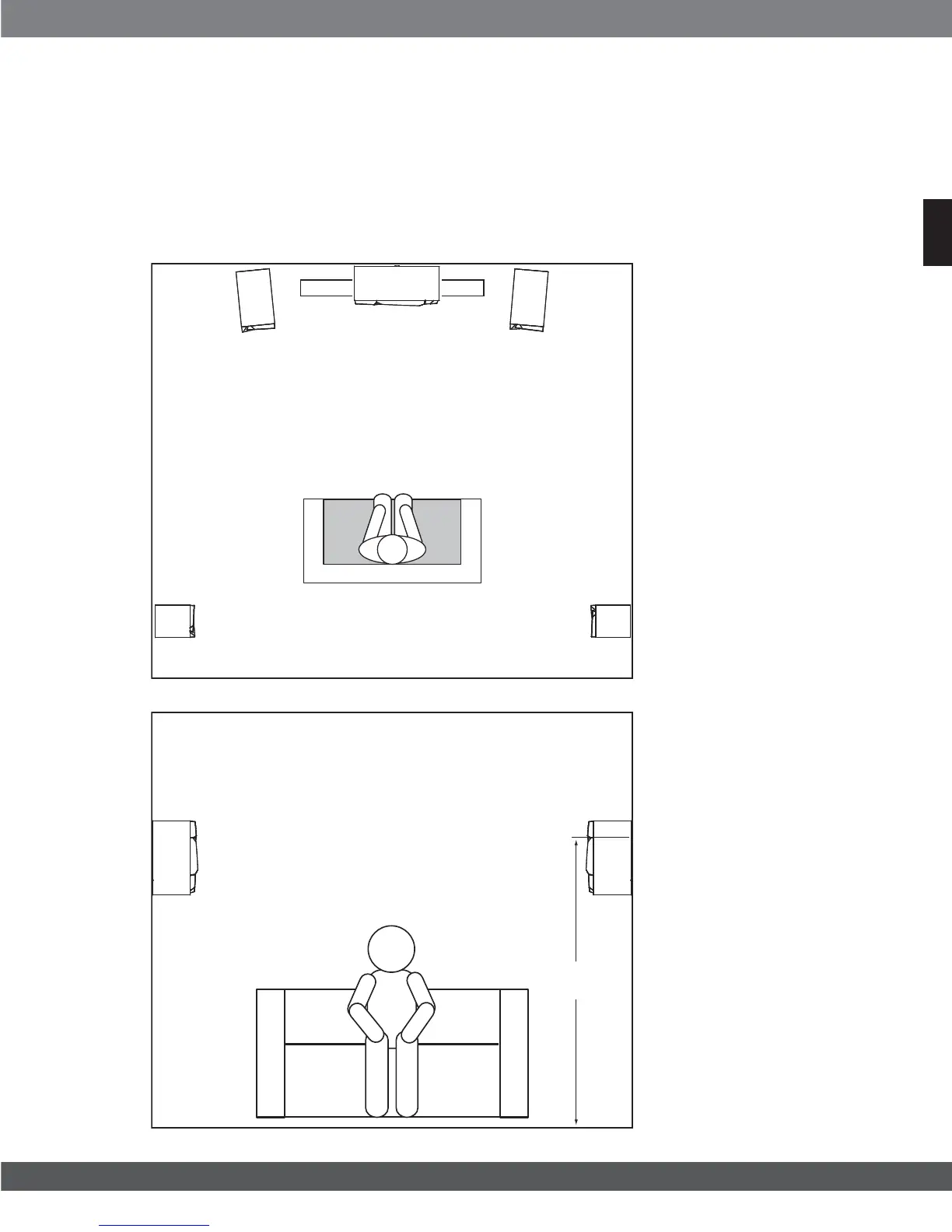 légèrement derrière la position d'écoute, face à face. L'idéal serait qu'elles soient placées à 5' – 6' (1,5 m – 1,8 m) au-dessus
