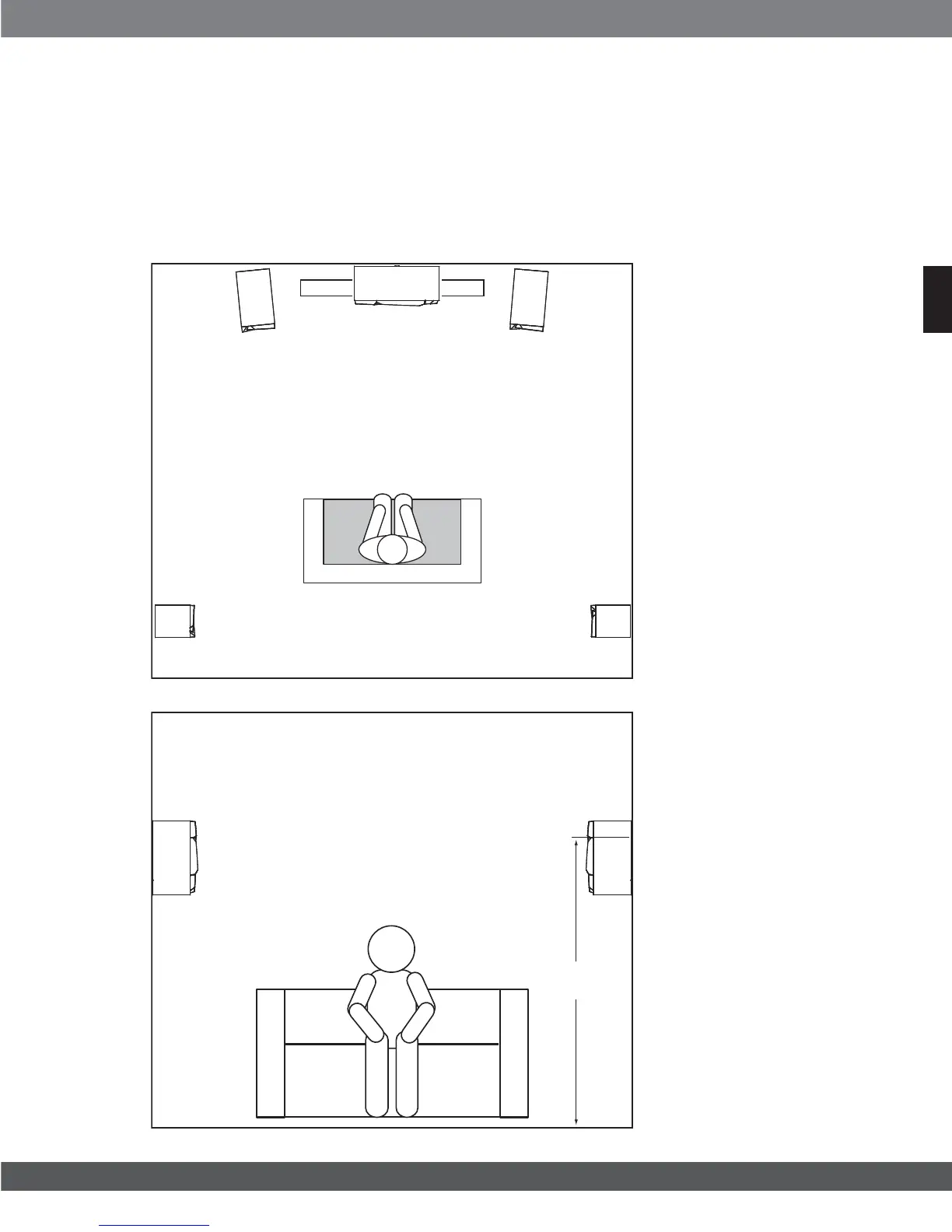 encima del suelo. Una ubicación alternativa sería la de una pared posterior a la posición de escucha, mirando hacia