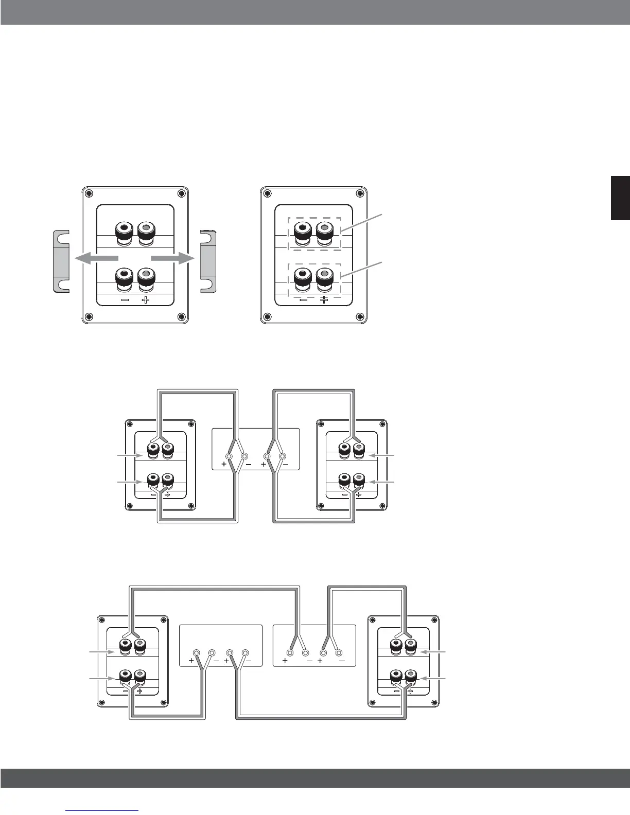 estéreo único o el uso de dos amplificadores estéreo. El bi-cableado puede ofrecer ventajas acústicas y una mayor