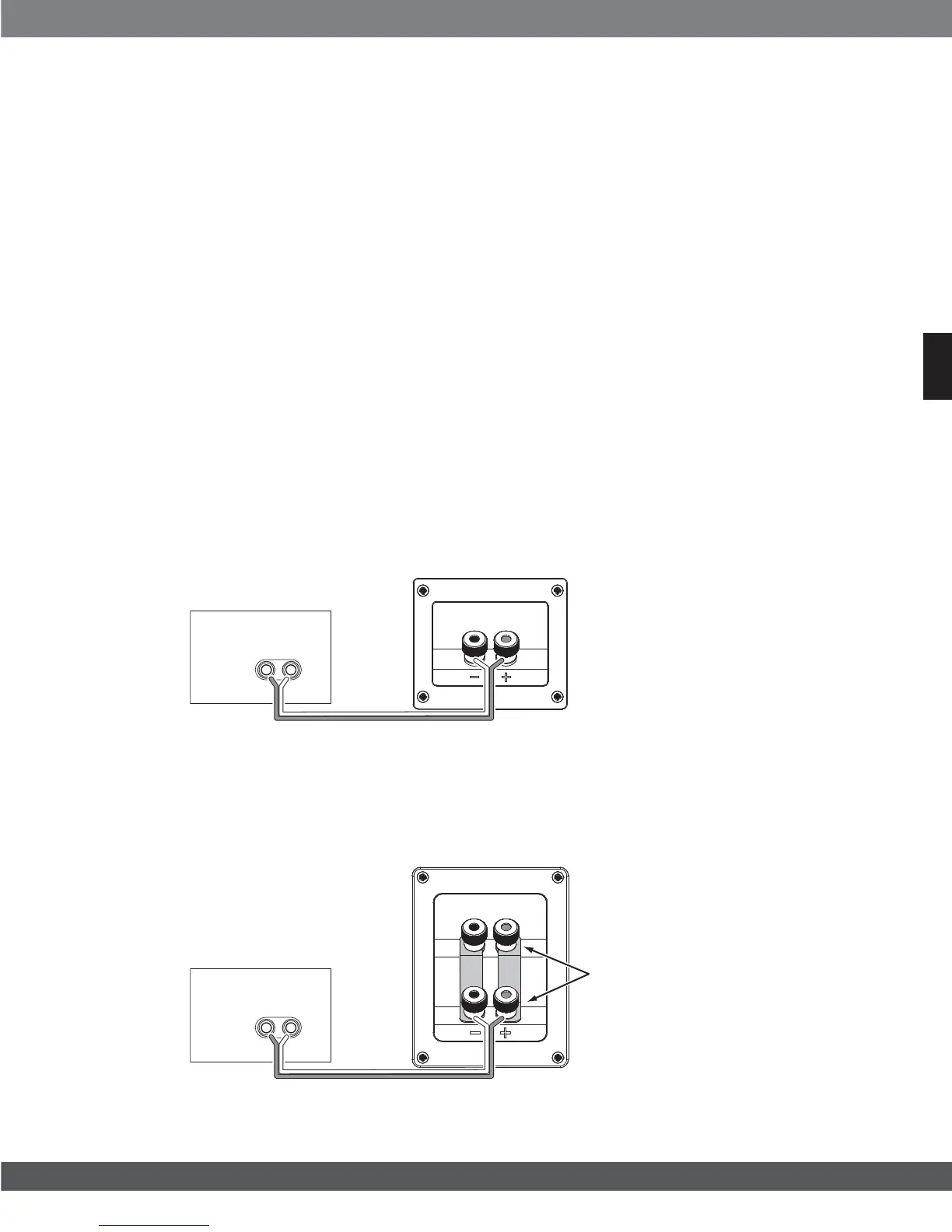 (rosso) di ogni diffusore. Collegare i terminali "–" in modo simile. Non invertite le polarità (ovvero, "+" a "–" o "-" a "+")