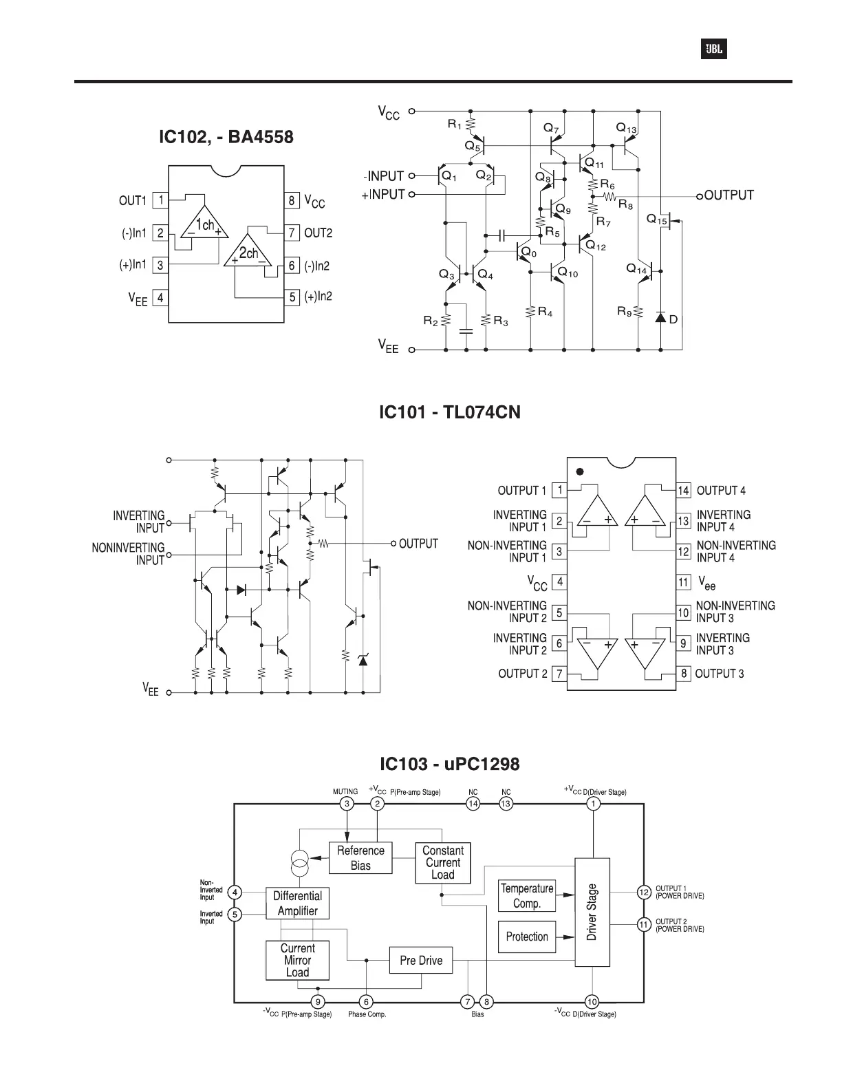 JBL Sub 6 - INTEGRATED CIRCUIT DIAGRAM; IC101, IC102, IC103 Diagrams