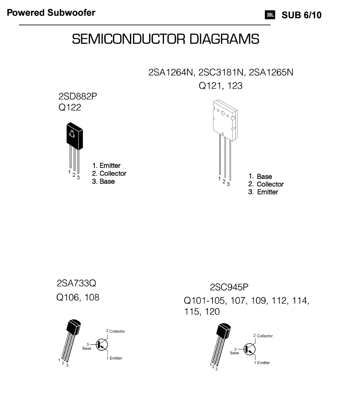 JBL Sub 6 - SEMICONDUCTOR DIAGRAMS; Transistor Pinout Diagrams