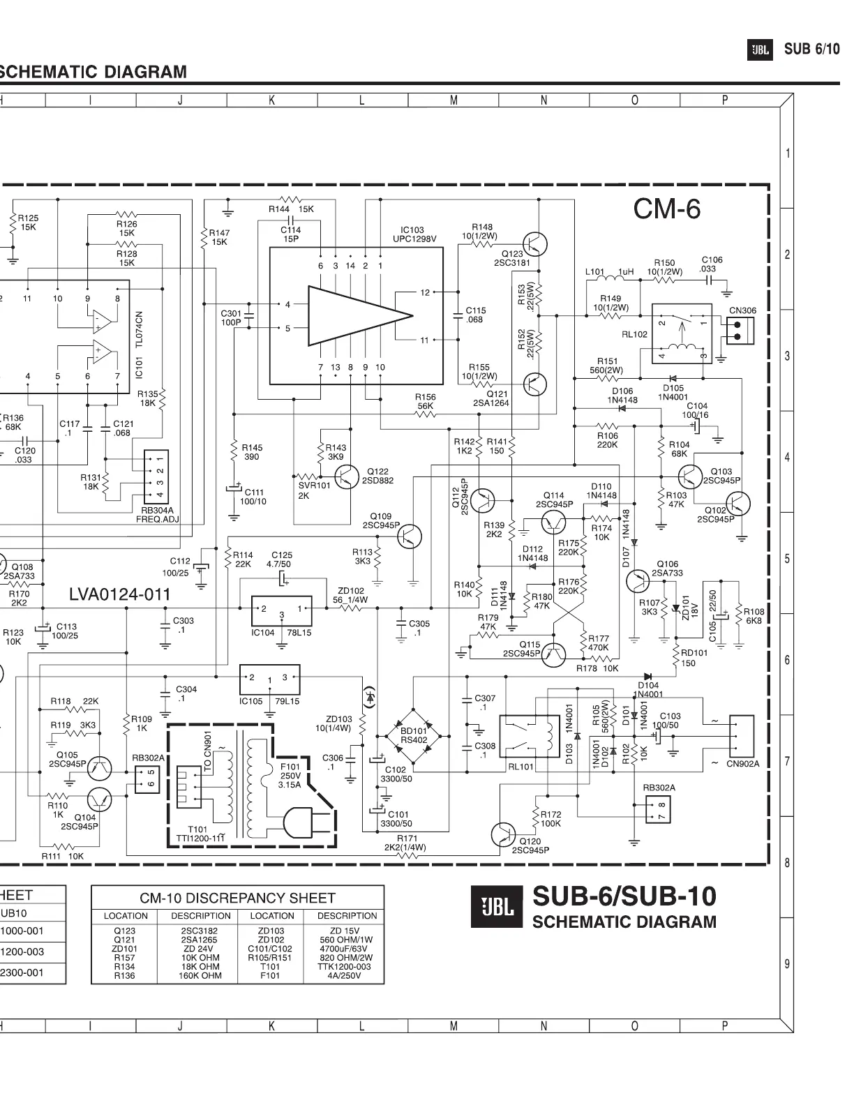 JBL Sub 6 - SCHEMATIC DIAGRAM (cont.); Sub6;Sub10 Schematic Details