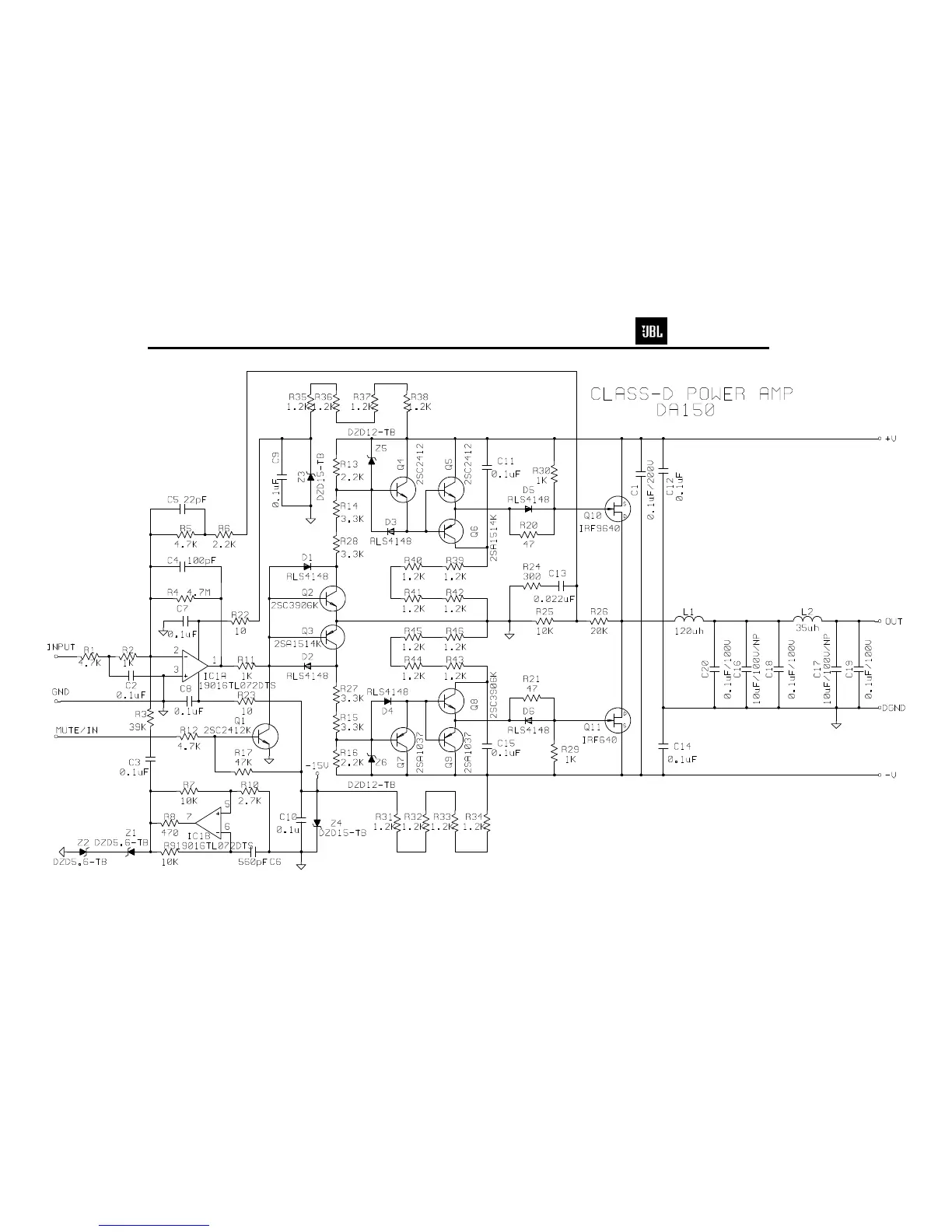 JBL SUB10 - Class-D Power Amplifier Schematic (DA150)
