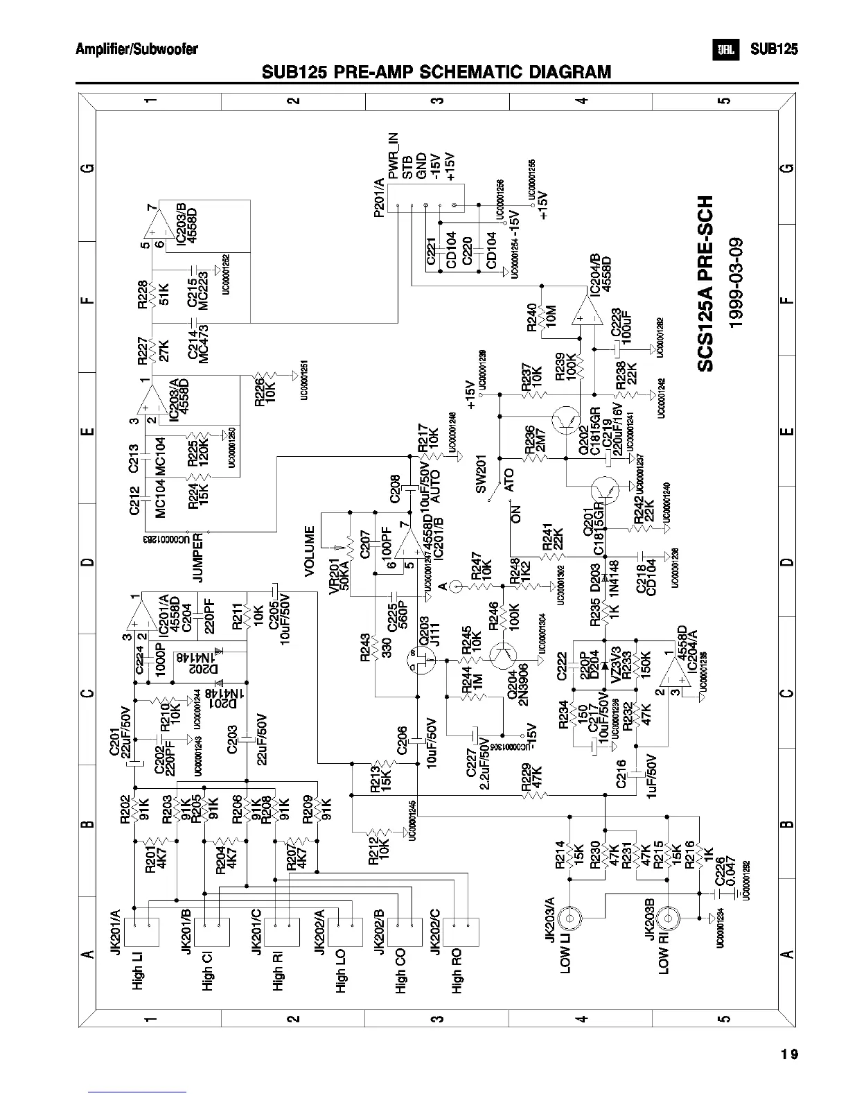 JBL SUB125a - PRE-AMP SCHEMATIC DIAGRAM