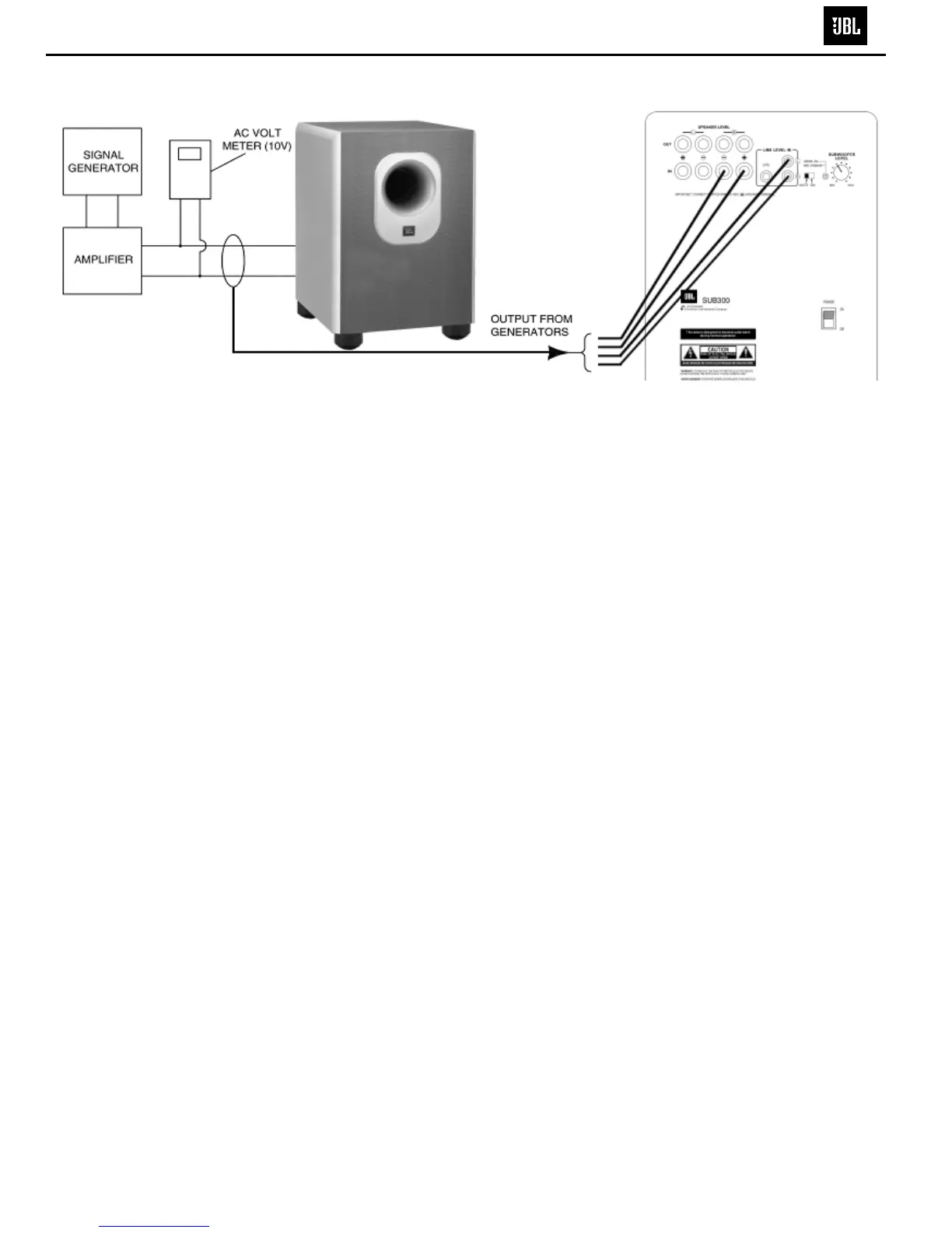 8) Turn on generator and adjust so that speaker level input at the amplifier is 2.0V, 50 Hz.
