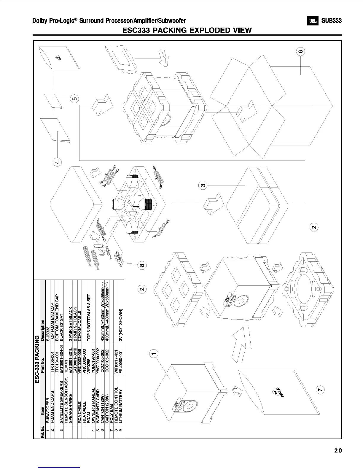 JBL SUB333 - ESC333 PACKING EXPLODED VIEW