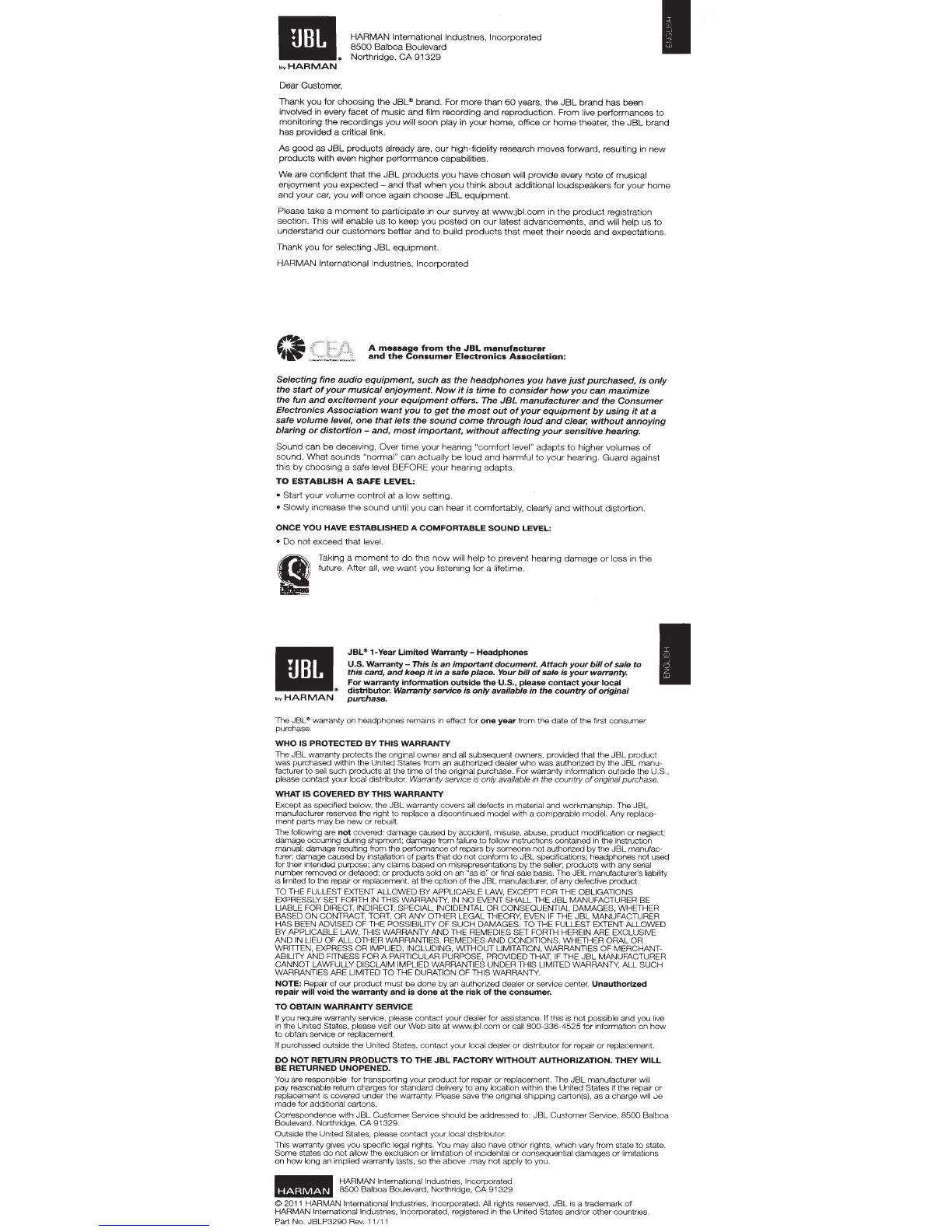 please visit our Web site at www.jbl.com or call