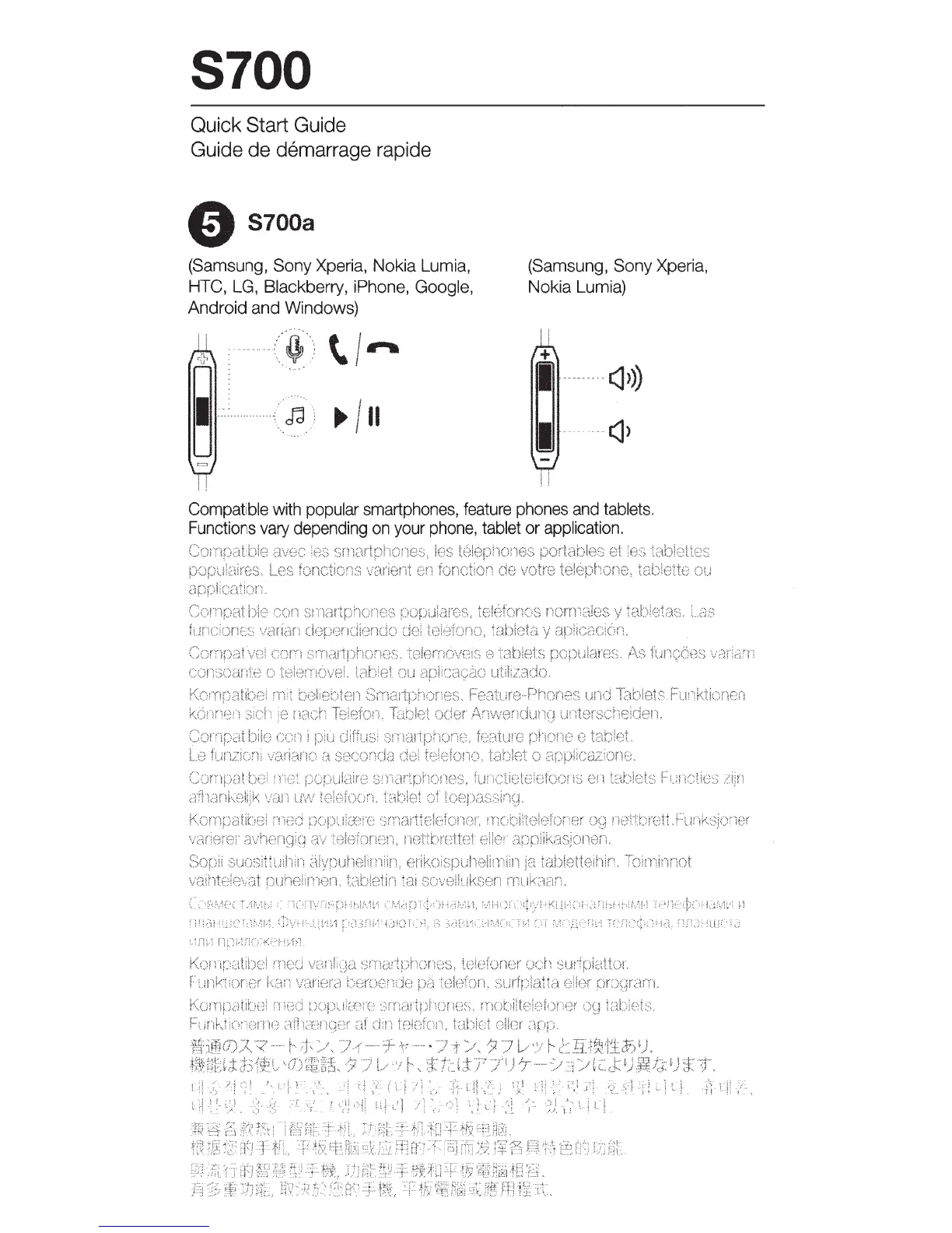JBL Synchros S700 - Device Compatibility for S700; S700 a Device Support; S700 i Device Support