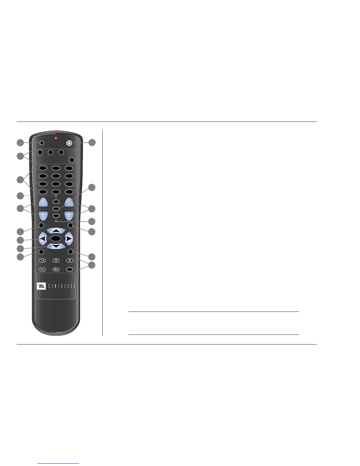 The chart that begins on the next page explains the functions performed by remote control