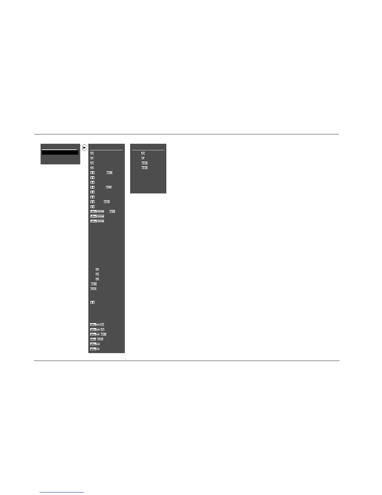 All listening mode menus are shown in the Appendix. The parameters
