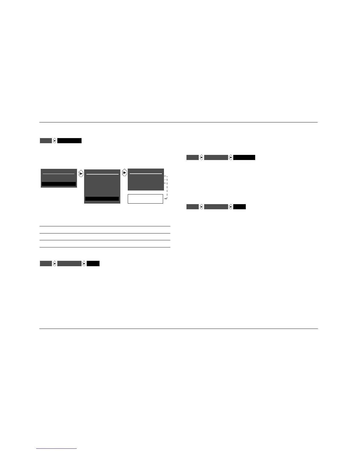 ADJUST, AUDIO CONTROLS, and SETUP menu branch parameter