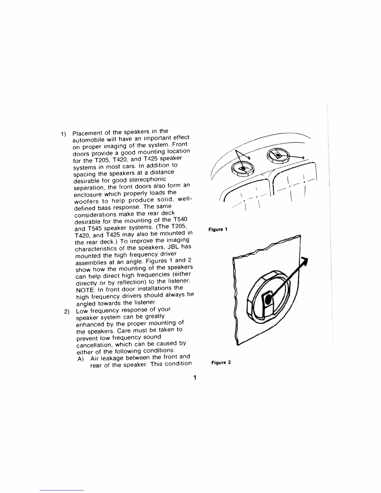 JBL T205 - Speaker Placement for Optimal Imaging; Low Frequency Response Enhancement