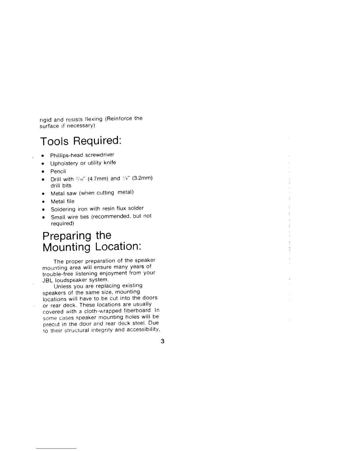 JBL T205 - Installation Tools and Preparation; Required Tools for Installation; Preparing the Mounting Location