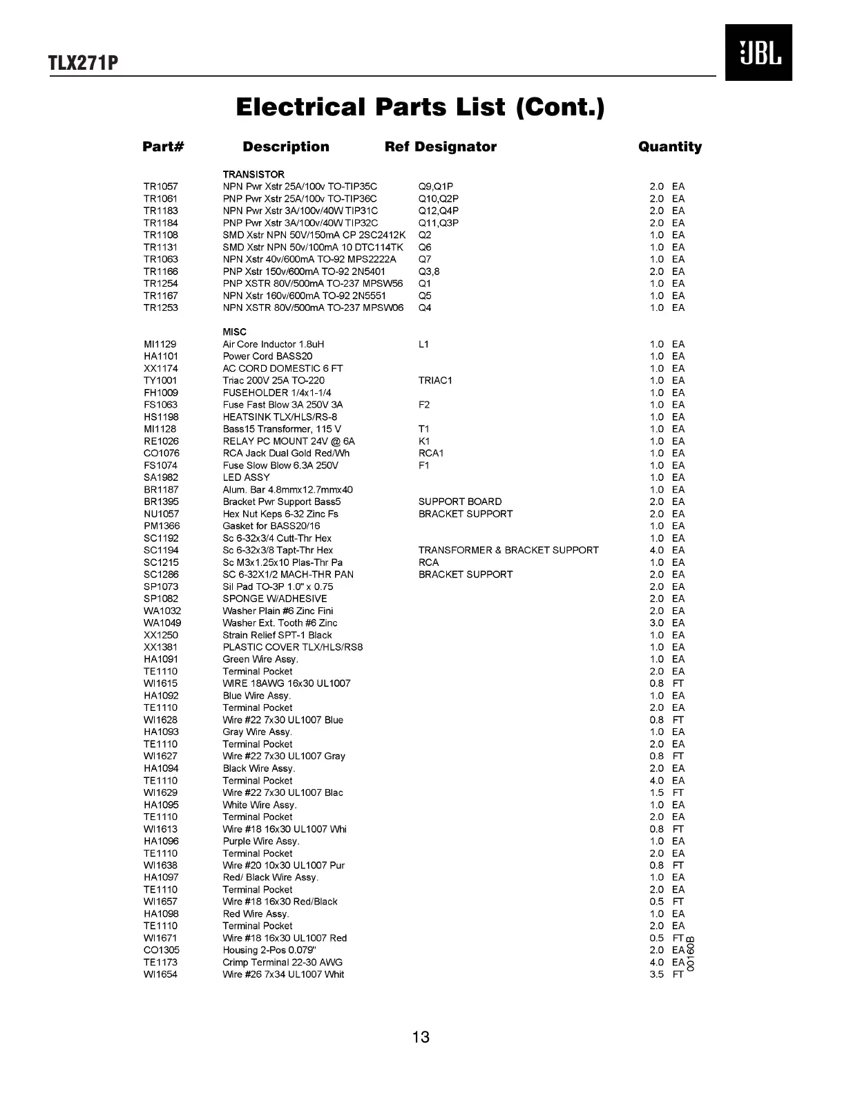 Electrical Parts List (Cont.)