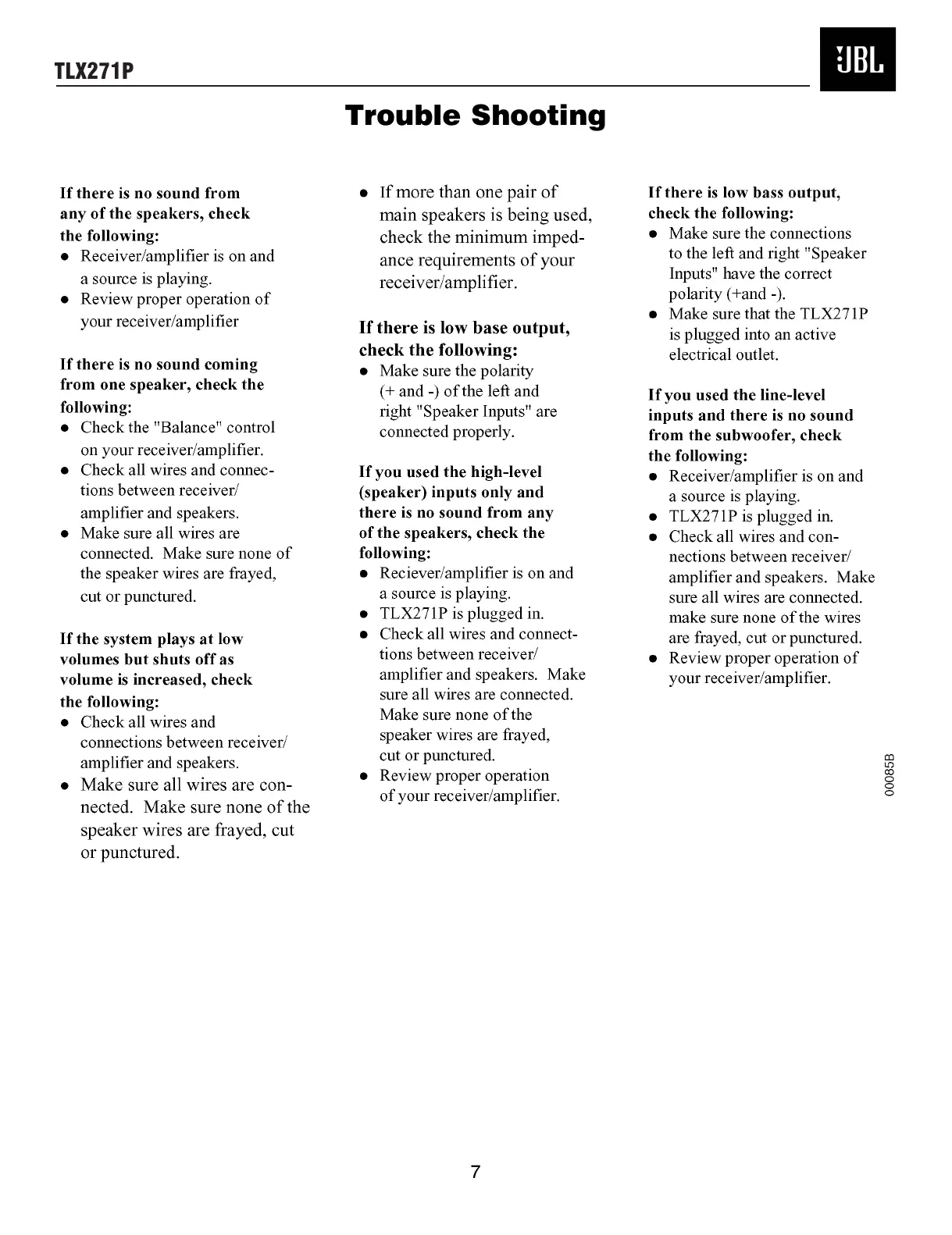 Other manuals for JBL TLX271P