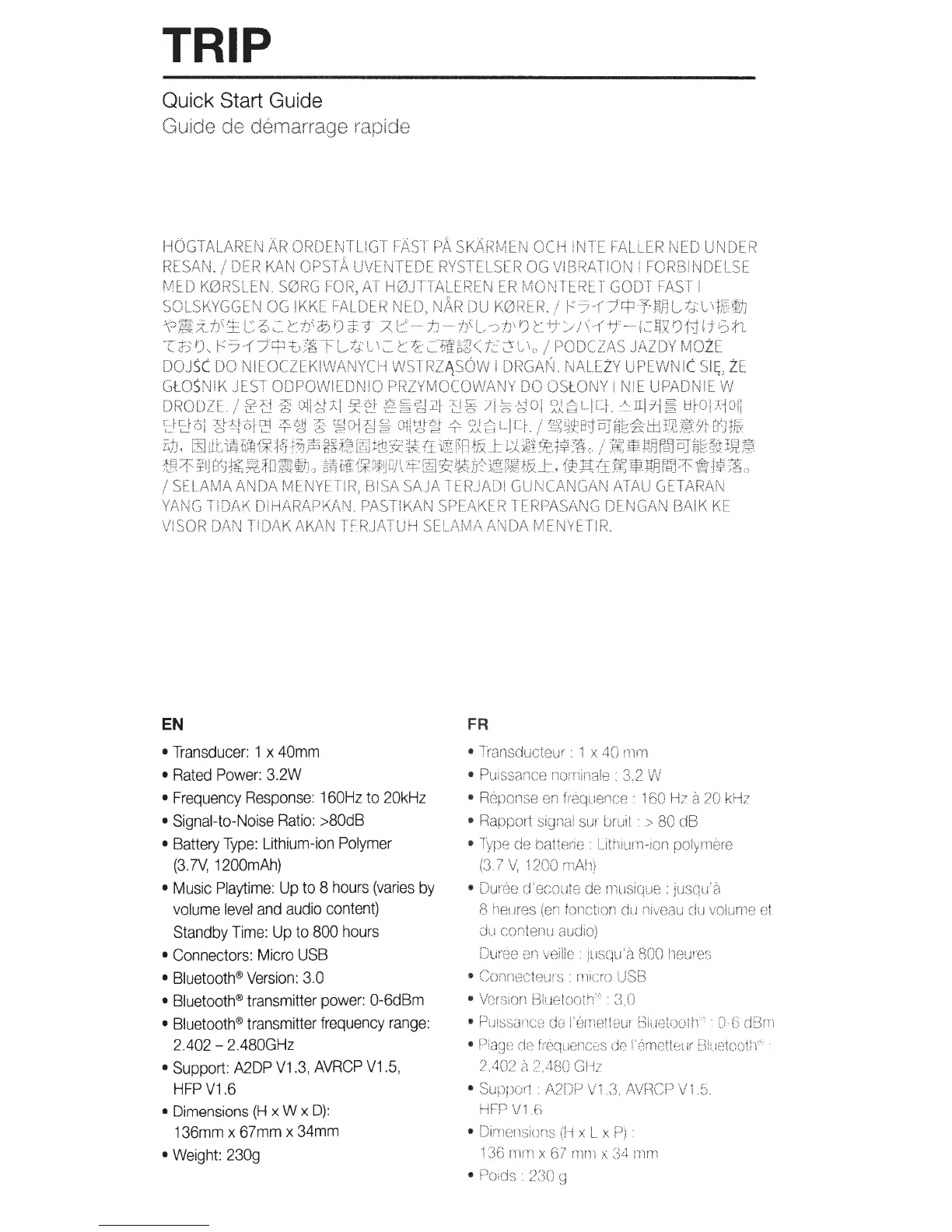 JBL TRIP - Technical Specifications