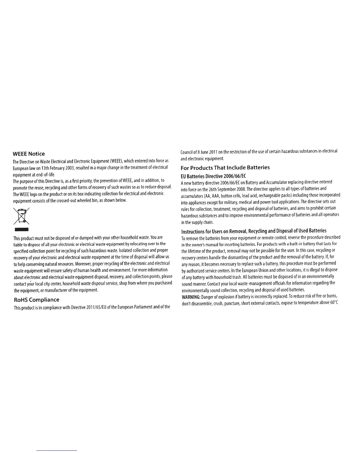JBL TRIP - Environmental and Battery Disposal; WEEE, RoHS, and Battery Directives; Battery Removal and Recycling