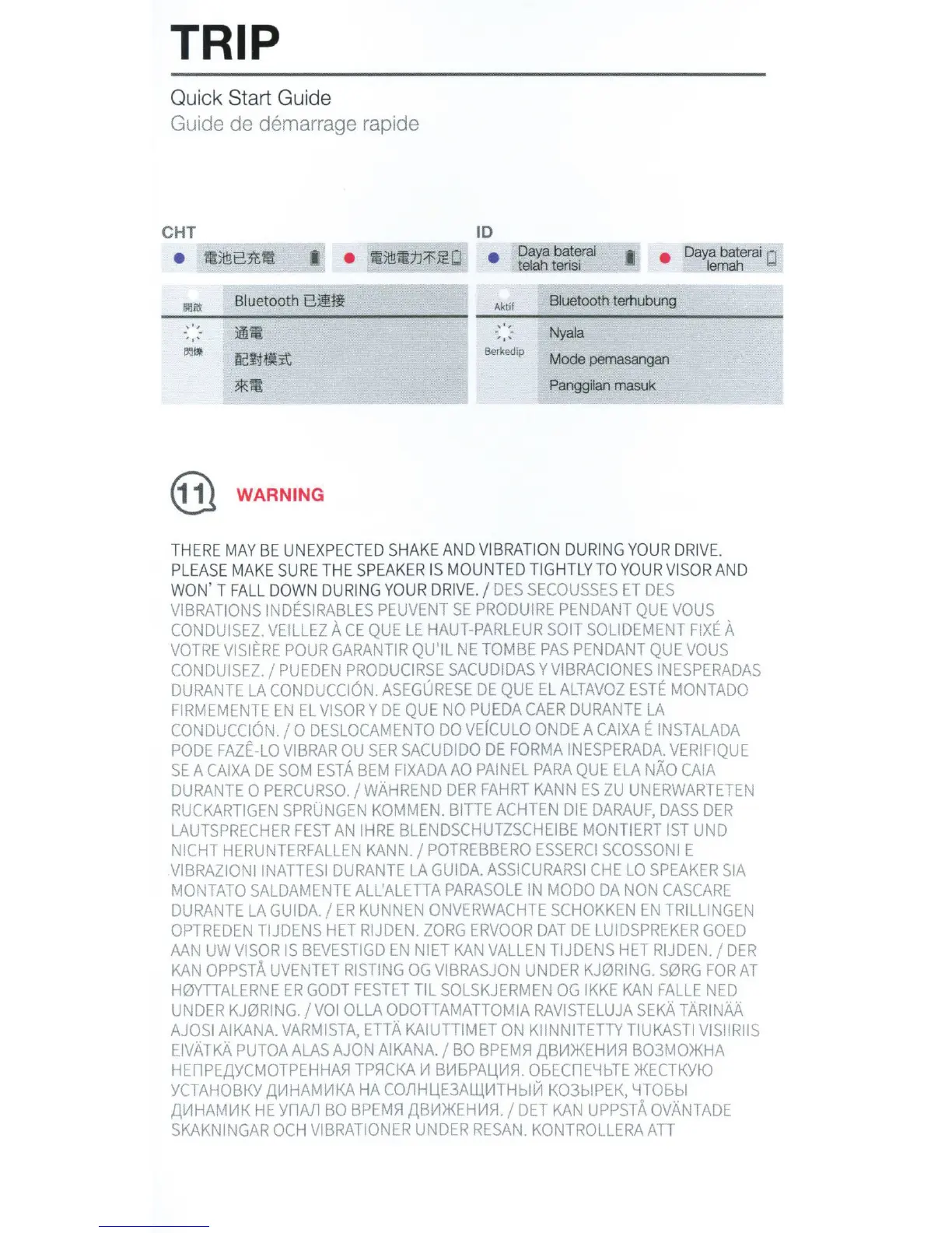 JBL TRIP - Important Safety Warnings; Driving Safety Precautions