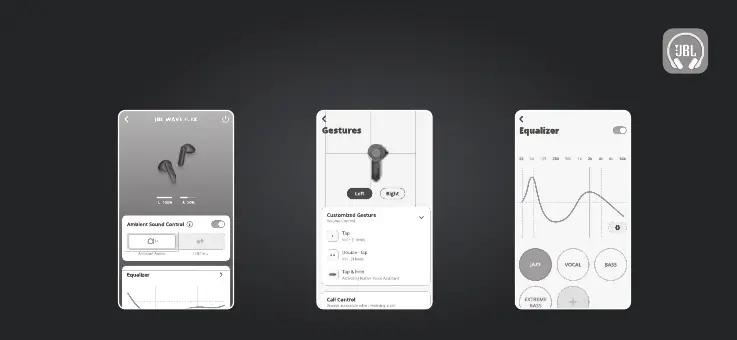 JBL Wave Flex - DO MORE WITH THE APP; App Features: Gestures and Equalizer