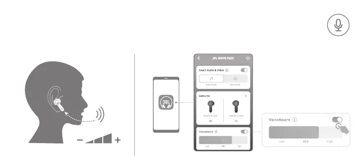 JBL Wave Flex - VOICEAWARE; Adjust VoiceAware Levels