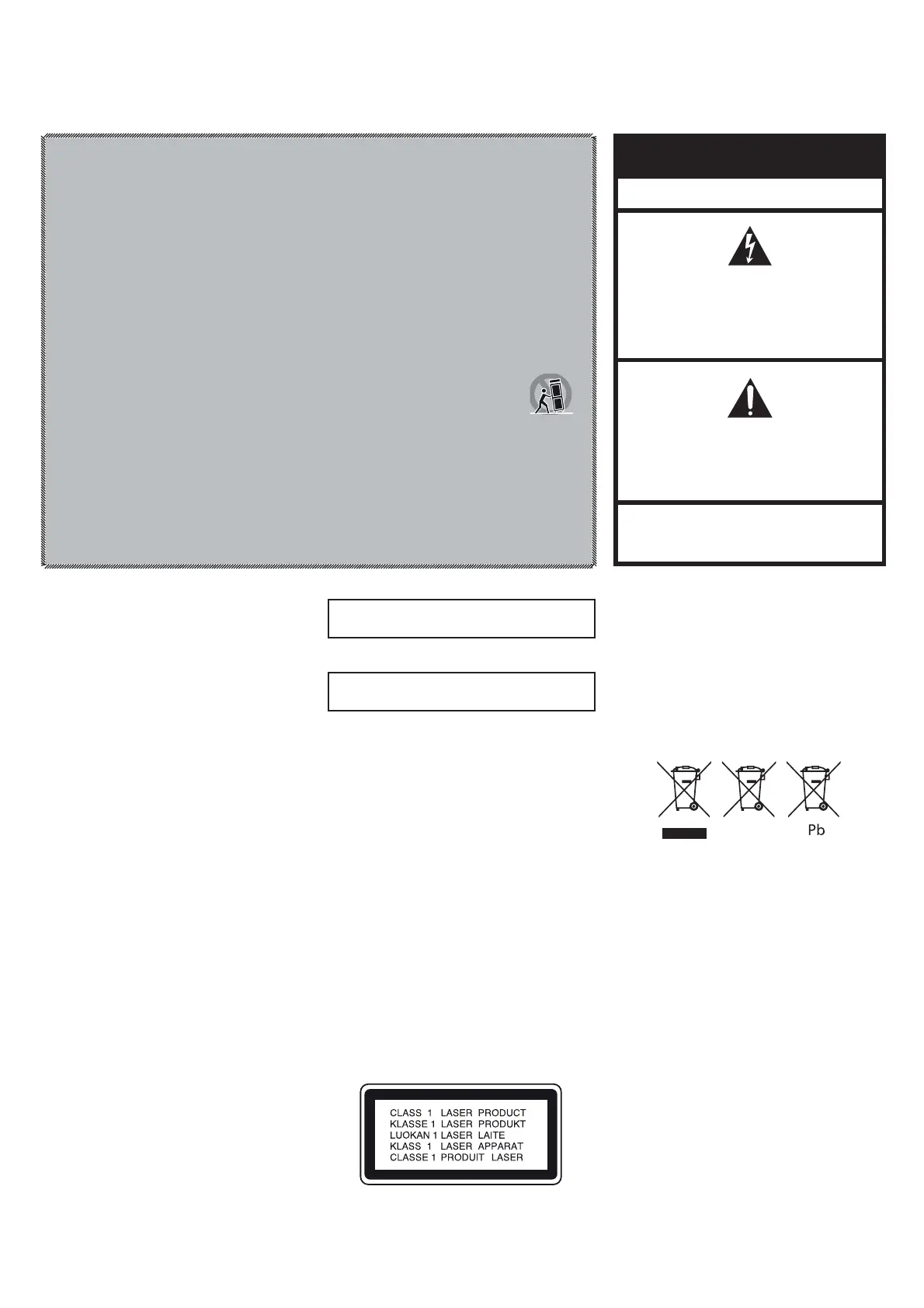16. To completely disconnect this apparatus from the AC Mains, disconnect the power supply cord plug from the AC