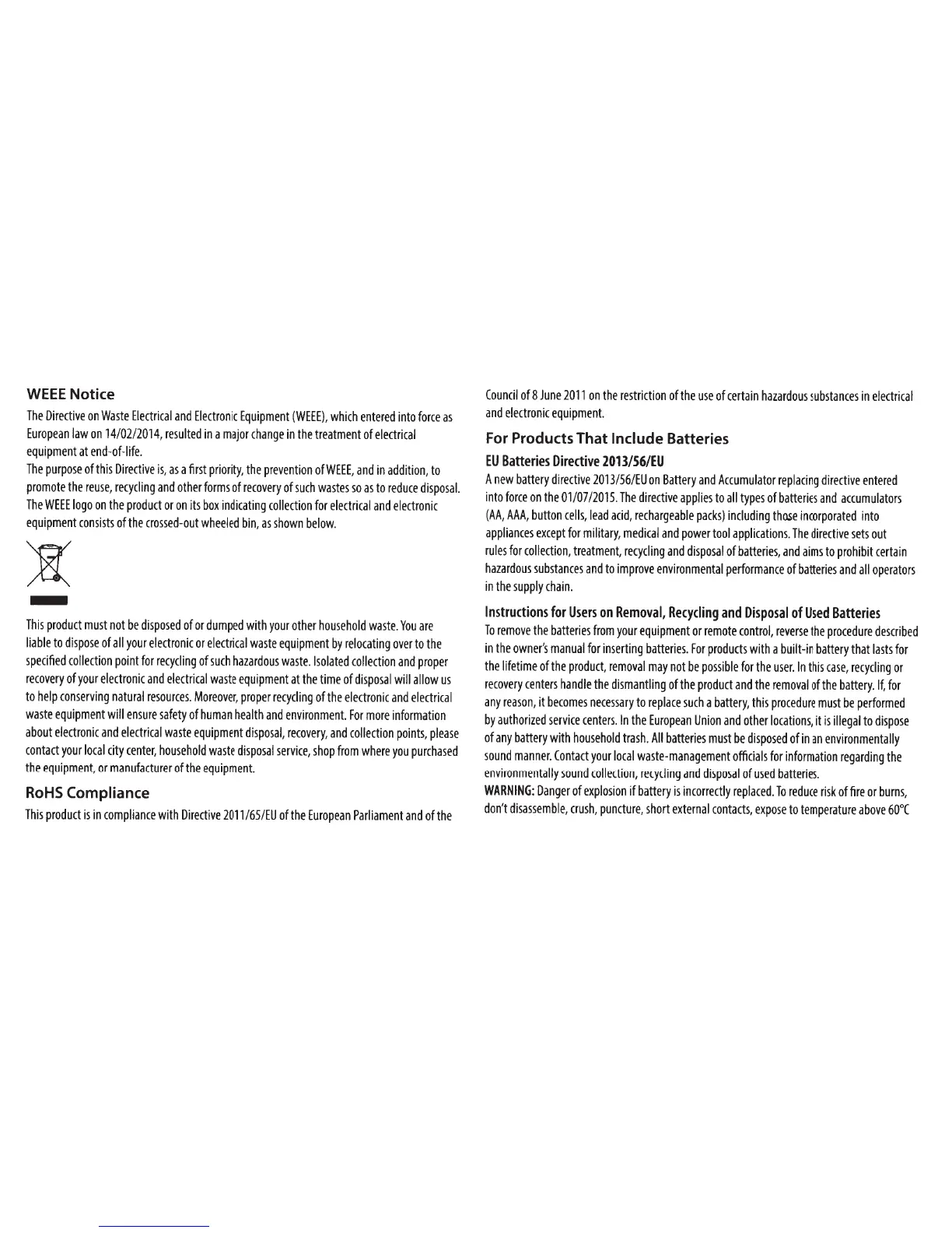 JBL XTREME2 - Environmental and Battery Regulations; WEEE Disposal and RoHS Compliance; EU Battery Directive and Handling