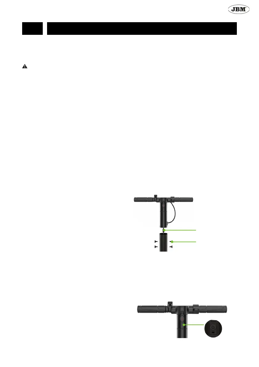 • Insira as duas alças do volante no tubo vertical. Insira o