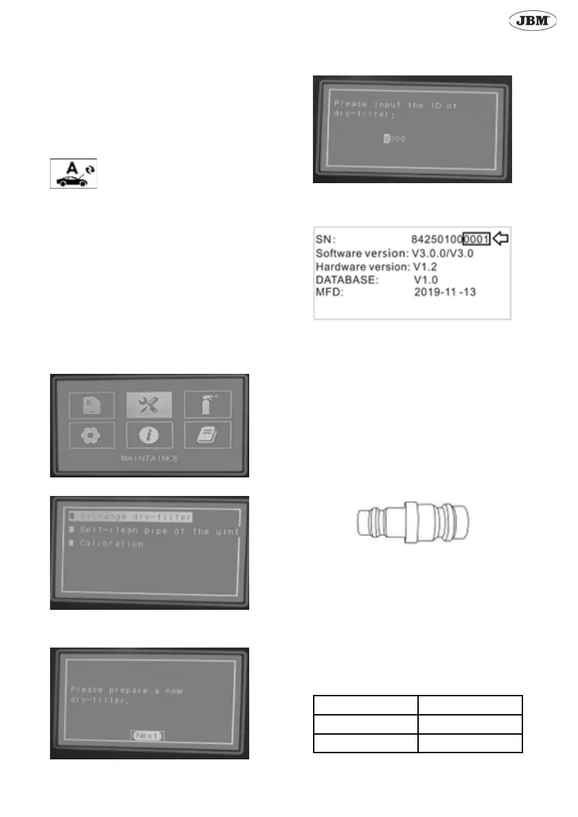 Enter the code of the dry-lter by pressing UP/DOWN keys.