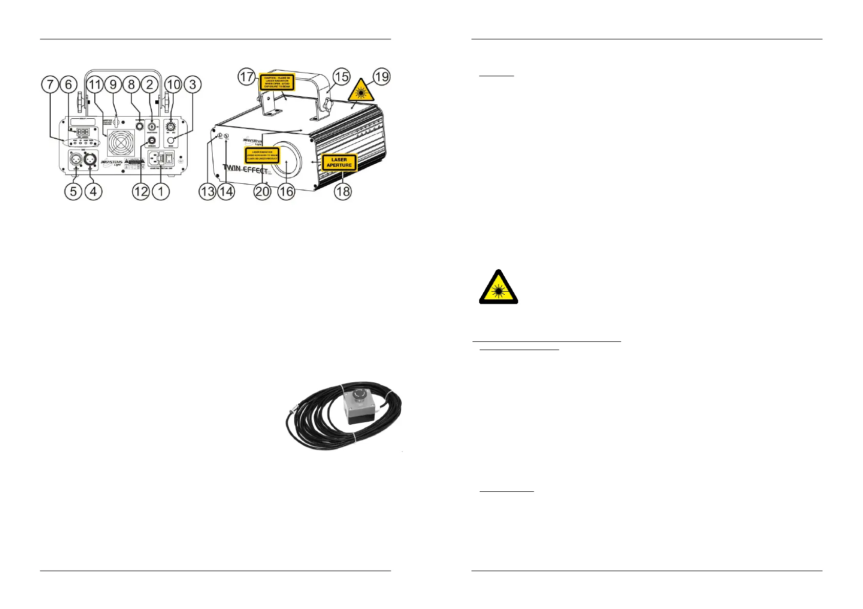 5. DMX UITGANG: 3pin vrouwelijke XLR-connector die gebruikt wordt om de TWIN EFFECT LASER aan