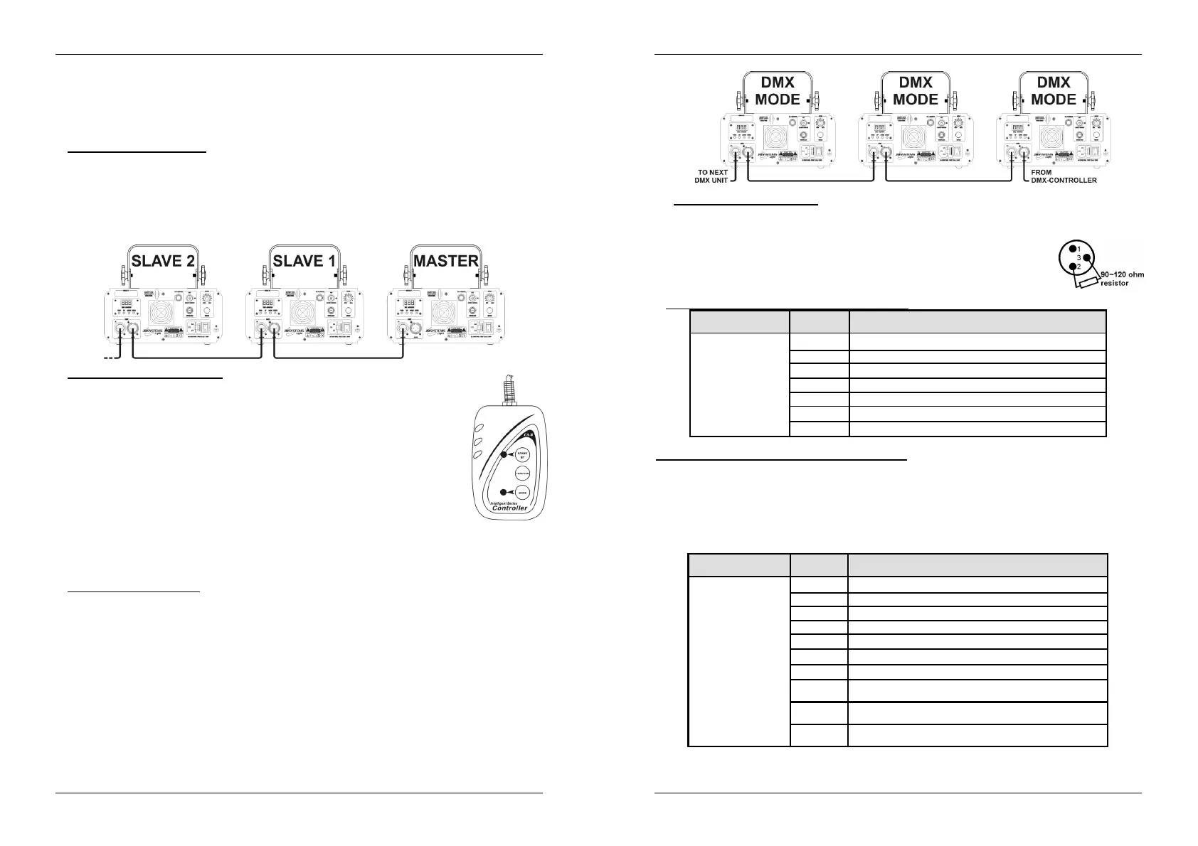 uw DMX bediening en alle units met een gebalanceerde kabel van goede kwaliteit doorverbinden om