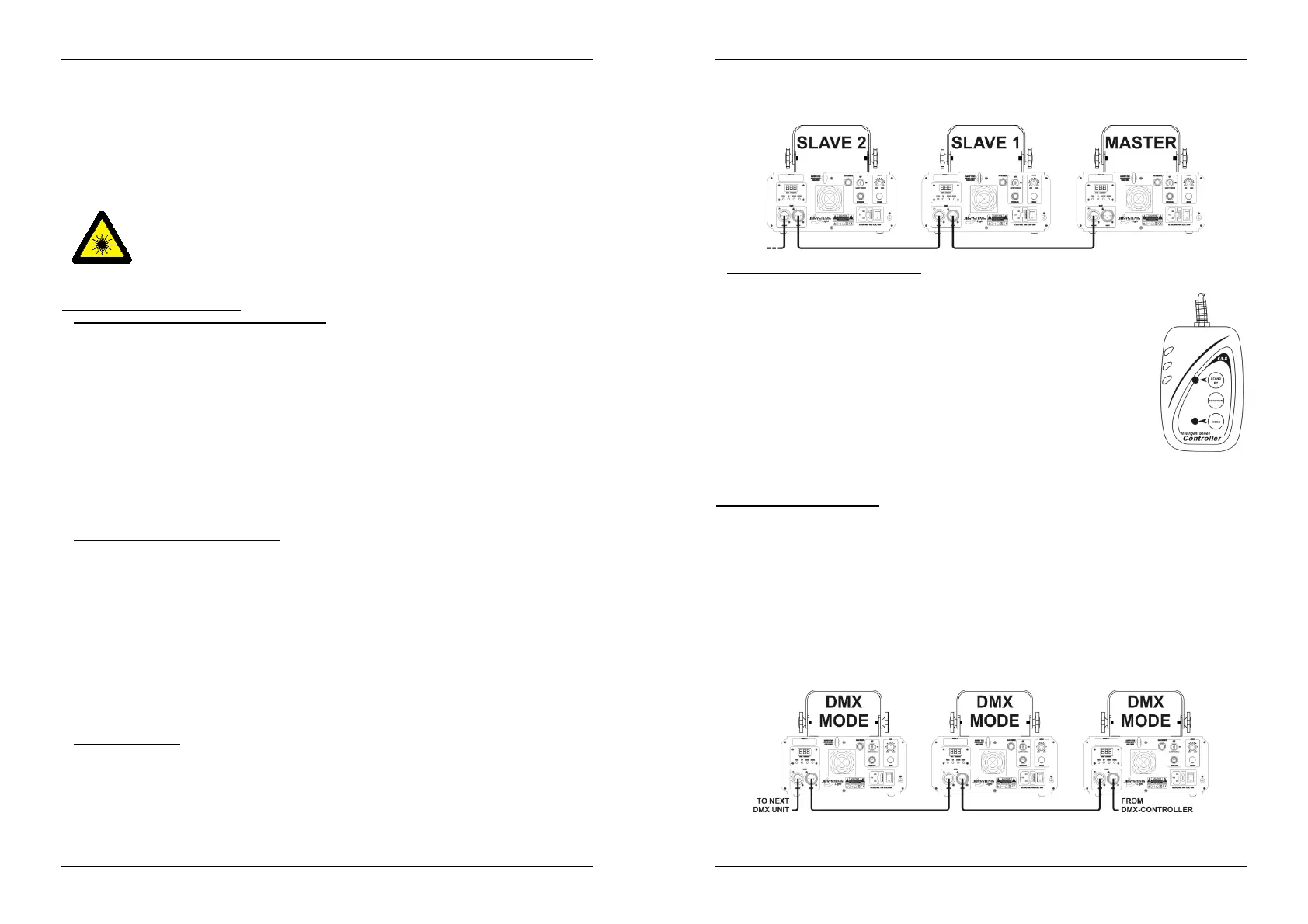 El láser puede ser controlado por cualquier controlador DMX estándar según 2 modos DMX diferentes: