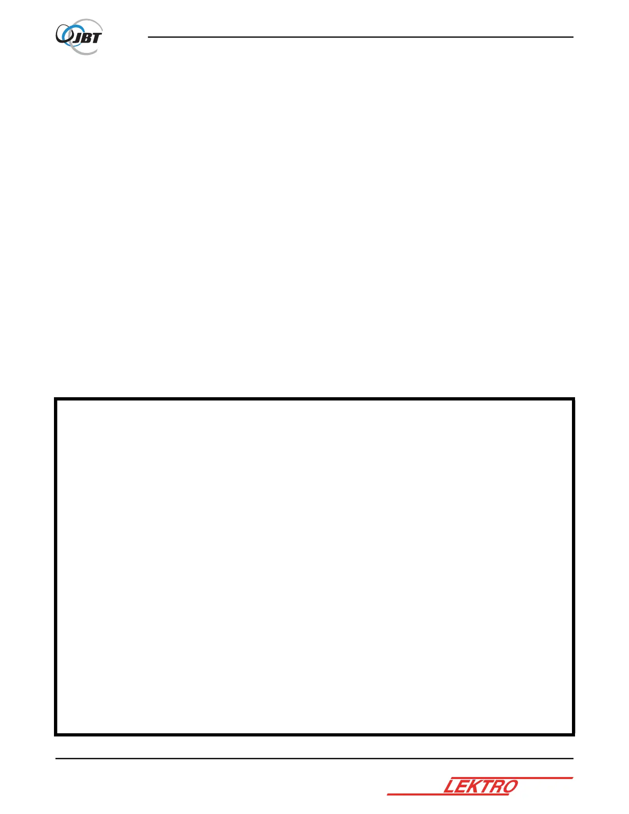 prior written permission of JBT LEKTRO, Inc.