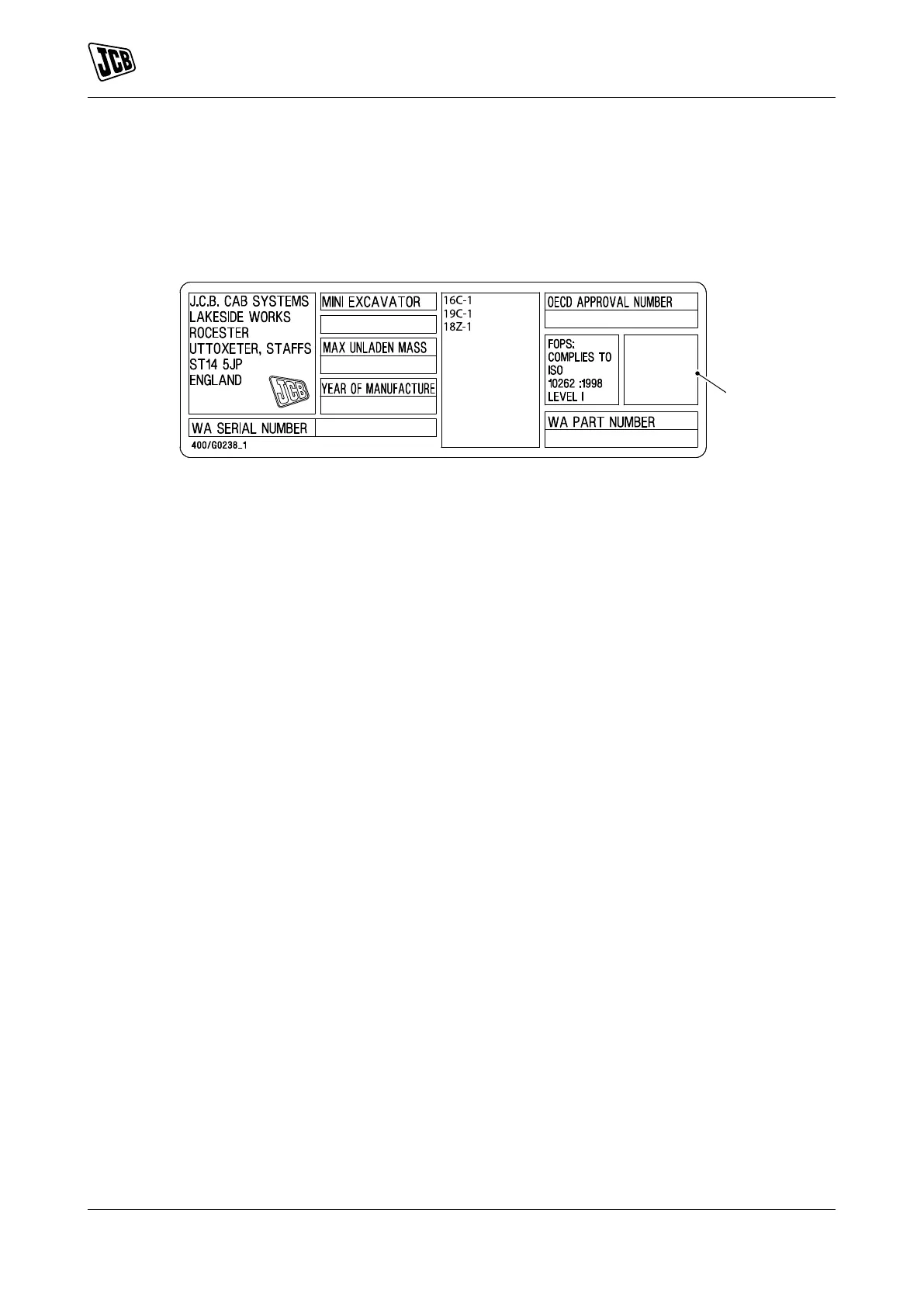 Protective Structure) must be installed. For further information, contact your JCB dealer.