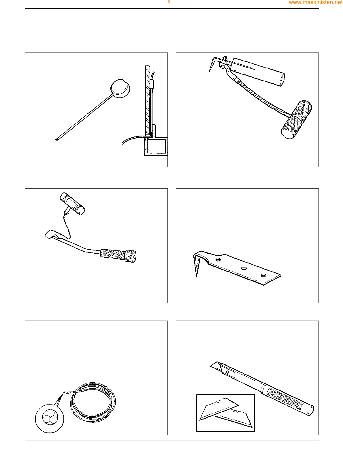 wire (below) to cut out broken glass.
