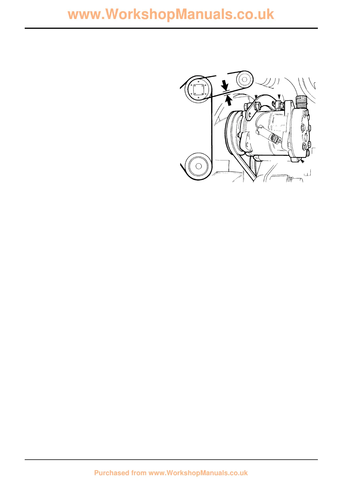 2 Loosen bolts A, B and C. Position the compressor so