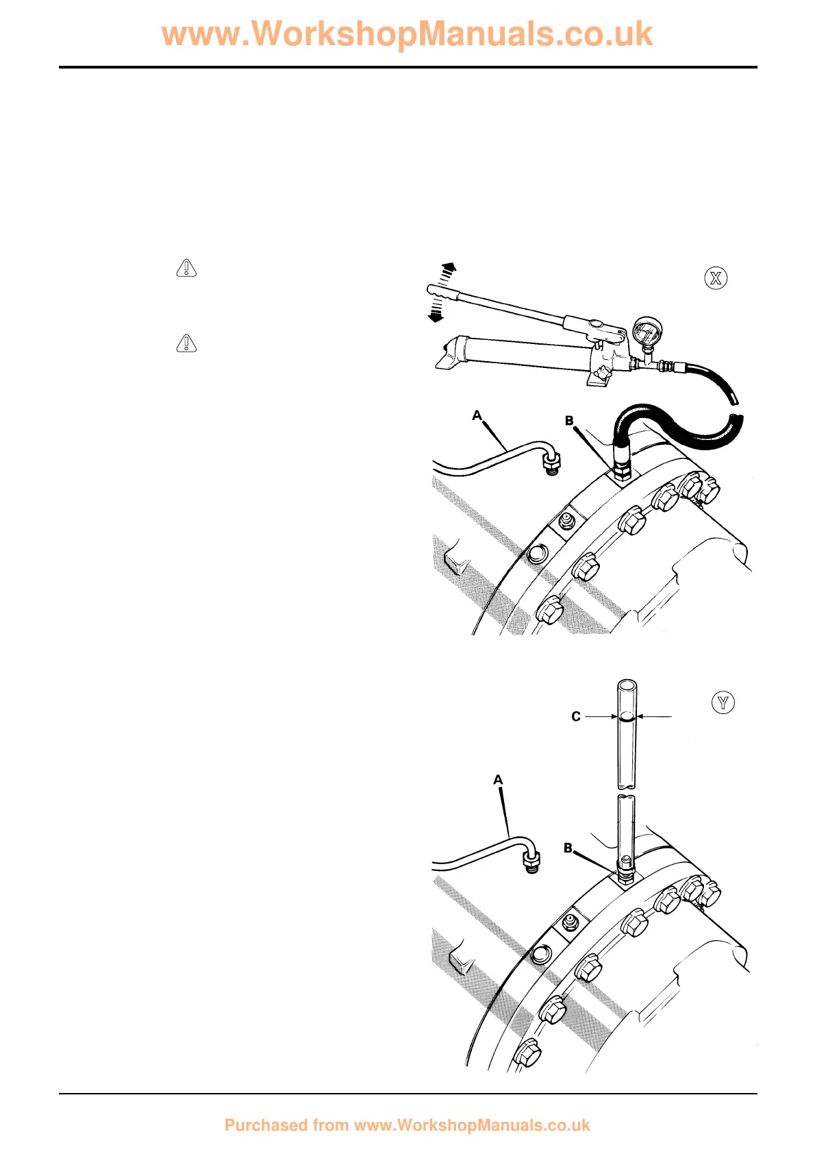the brake piston port B, as shown at Y.