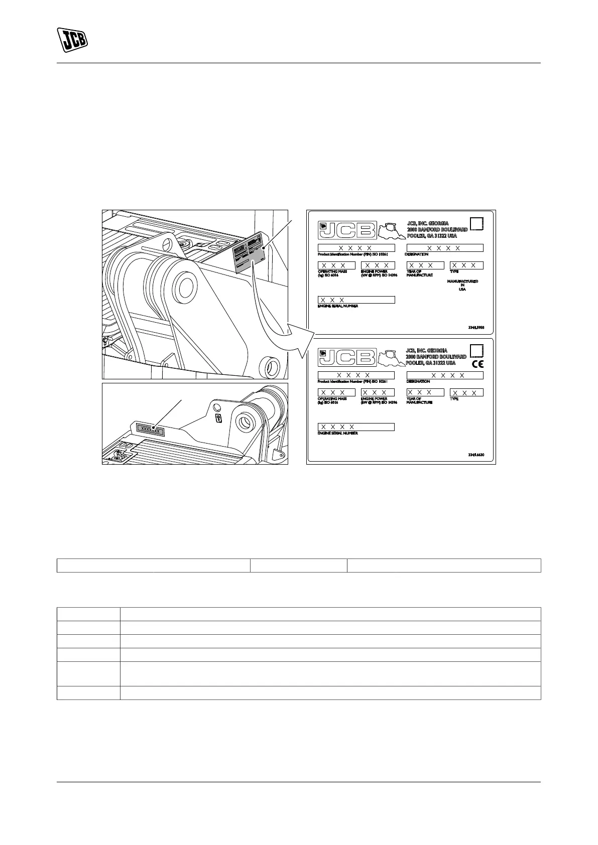 1 to 3 World manufacturer identification. For example, JCB = UK Build. GE0 = USA Build