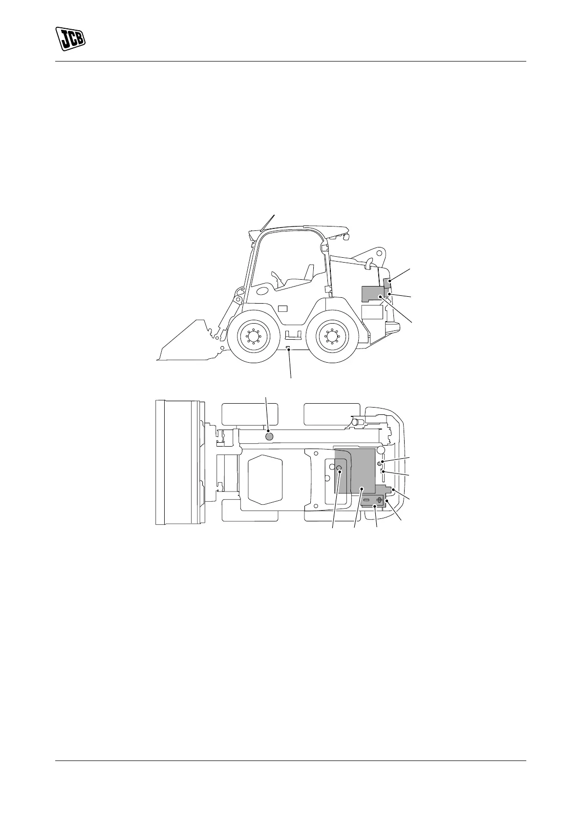 E Engine oil dipstick F Hydraulic oil level indicator, Hydraulic oil filler