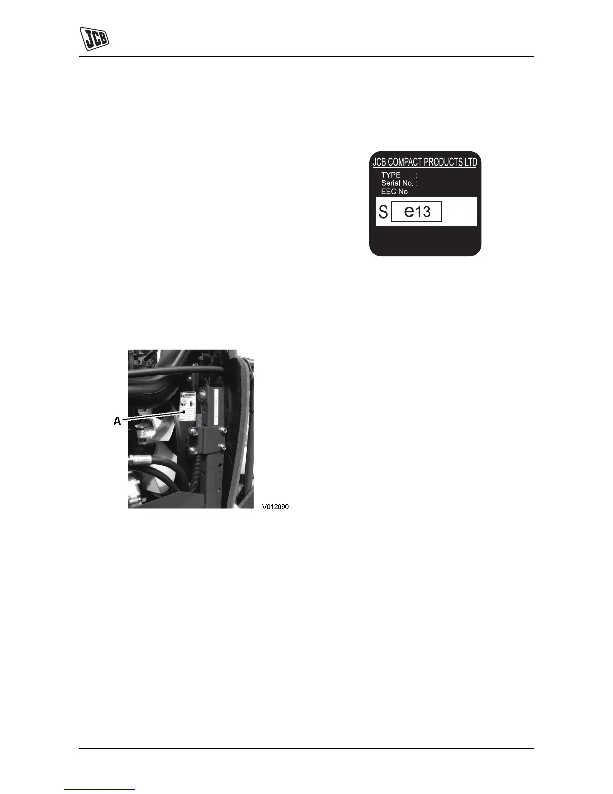 identification label fitted to the cab. A typical identification