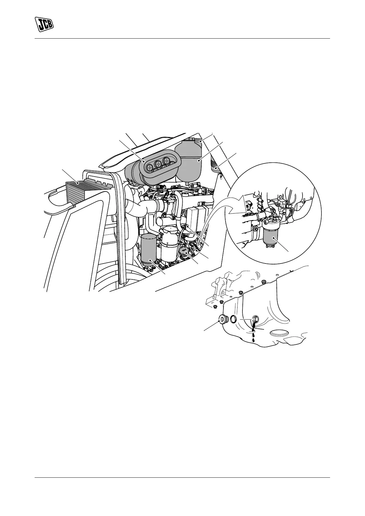 E Fuel filter water separator F Engine fuel filter