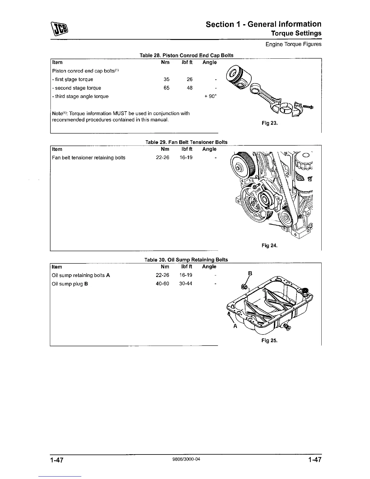 jcb 444 - Piston Conrod End Cap Bolts; Fan Belt Tensioner Bolts; Oil Sump Retaining Bolts