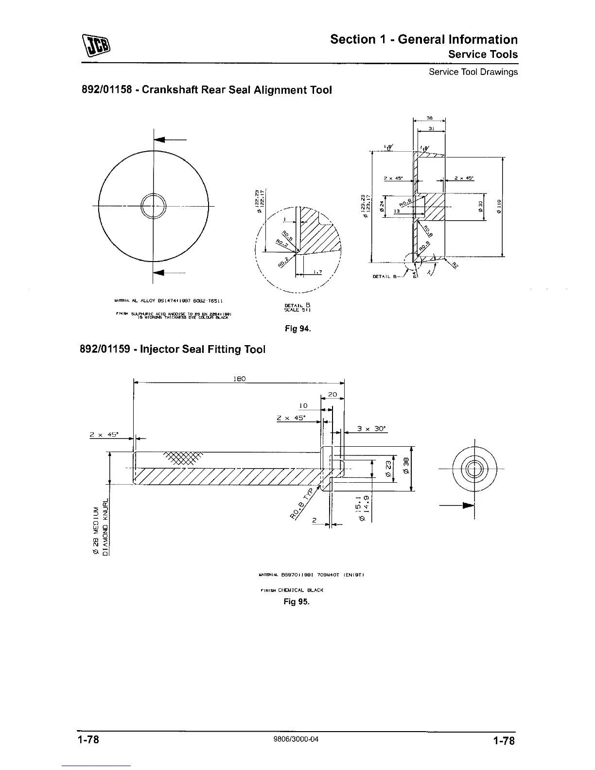 jcb 444 - Crankshaft Rear Seal Alignment Tool; Injector Seal Fitting Tool