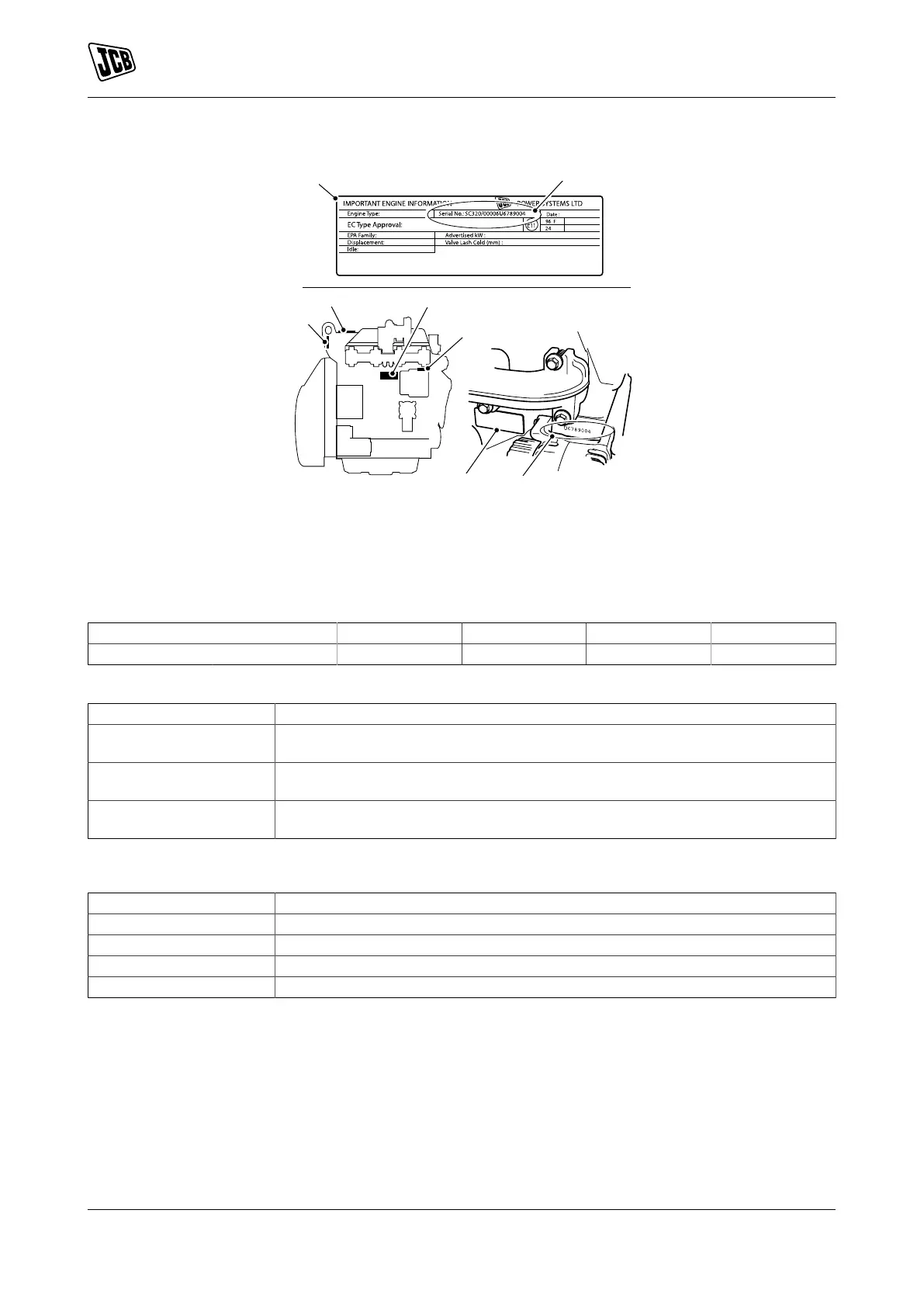 C Engine data label - cylinder block D Engine data label - rocker cover