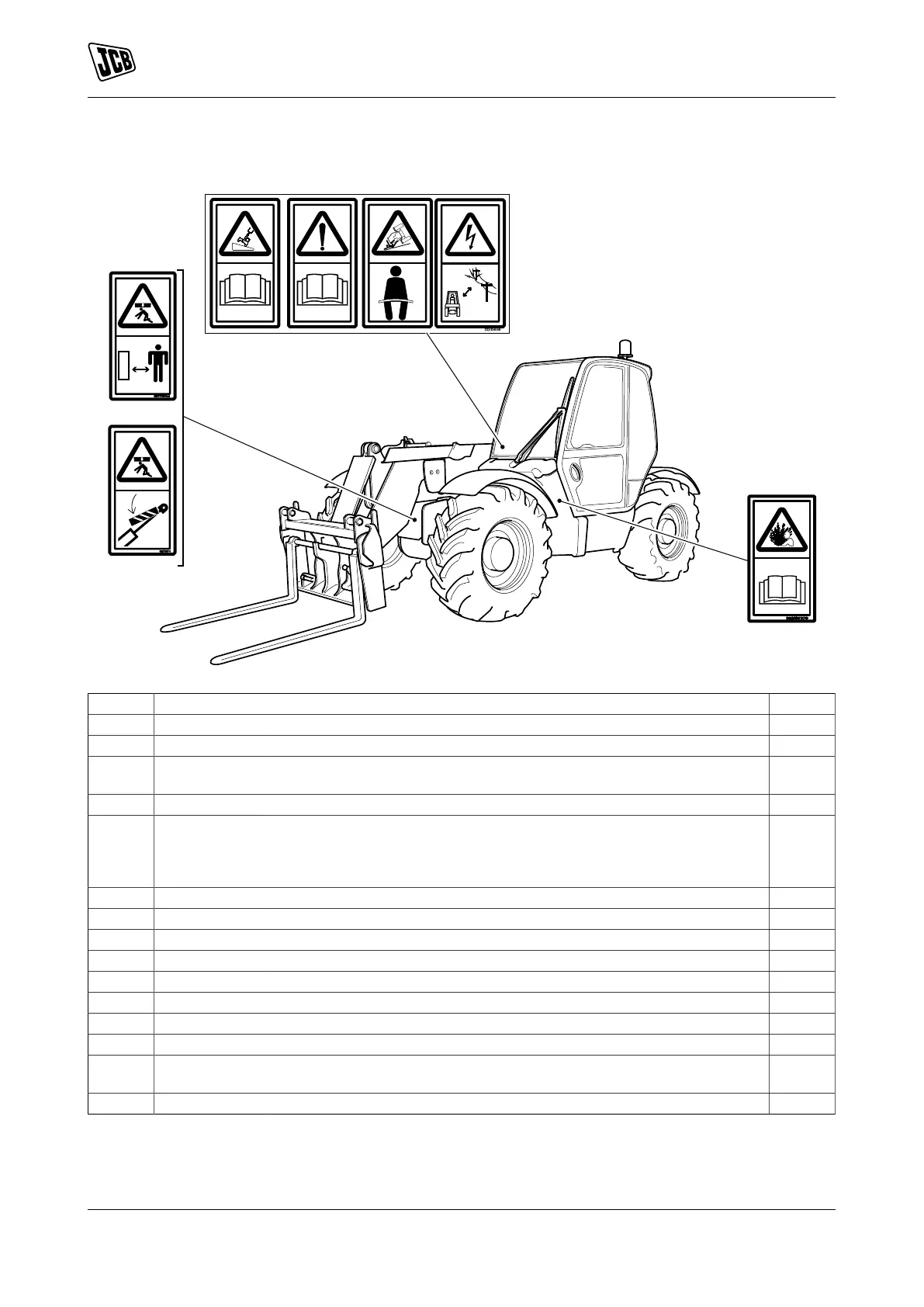 H 817/70011 Fall from raised attachment. Do not stand or ride on the bucket or forks. 1
