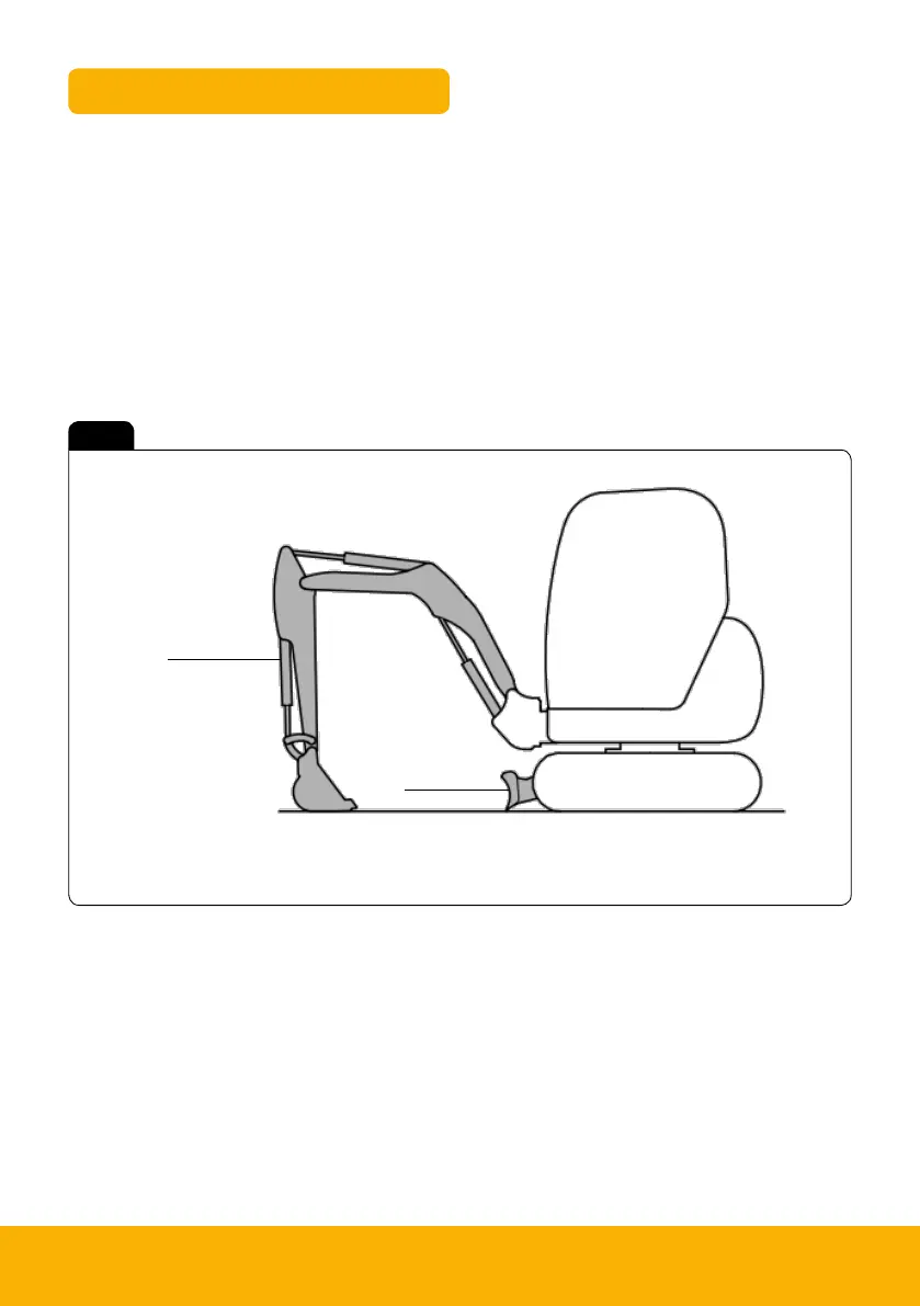 3. Lower the excavator so the attachment is flat on the ground (B)